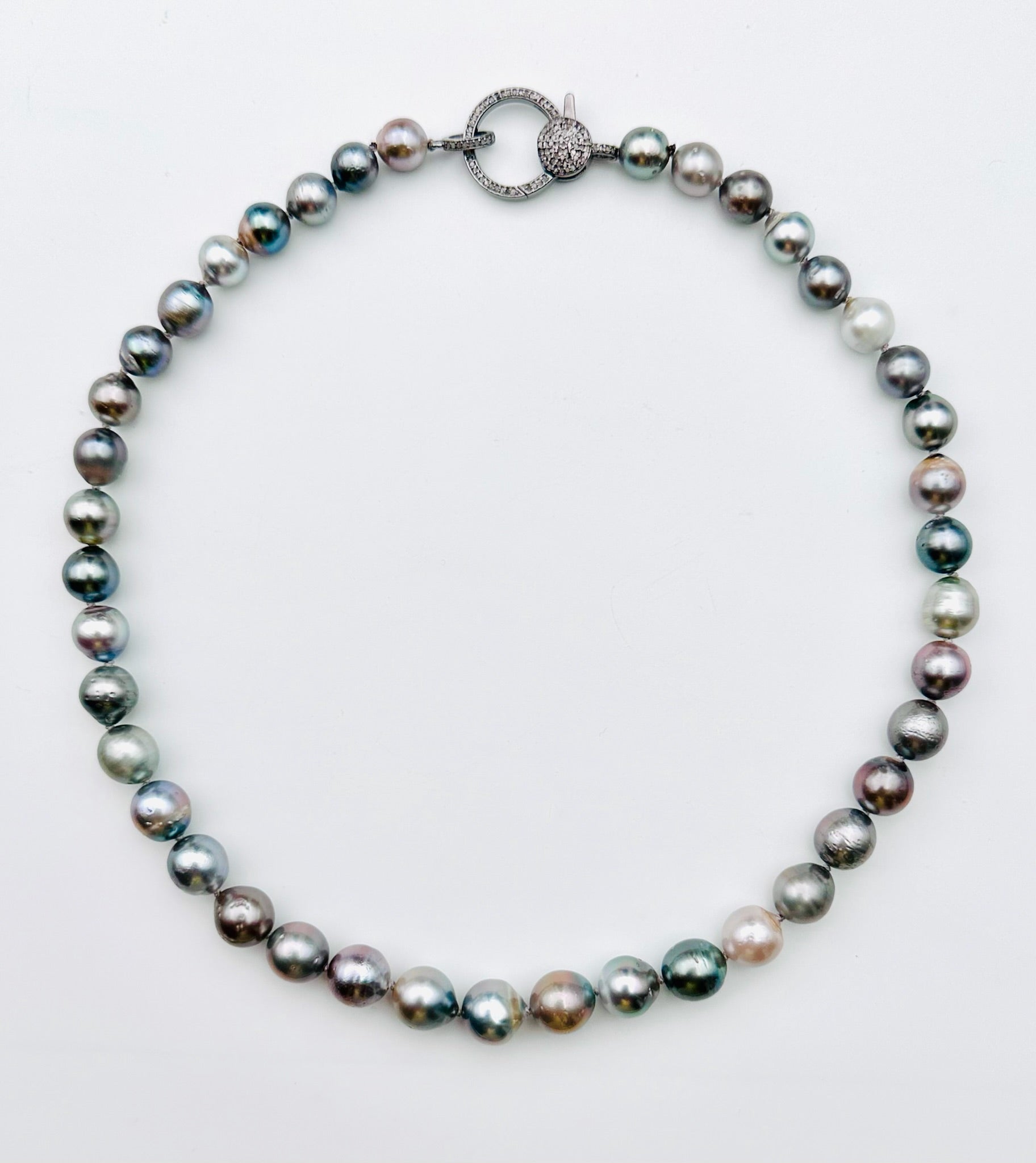 Ombré Tahitian Graduated 11-13mm Pearl Necklace with Large Sterling Silver Diamond Clasp, 18" length