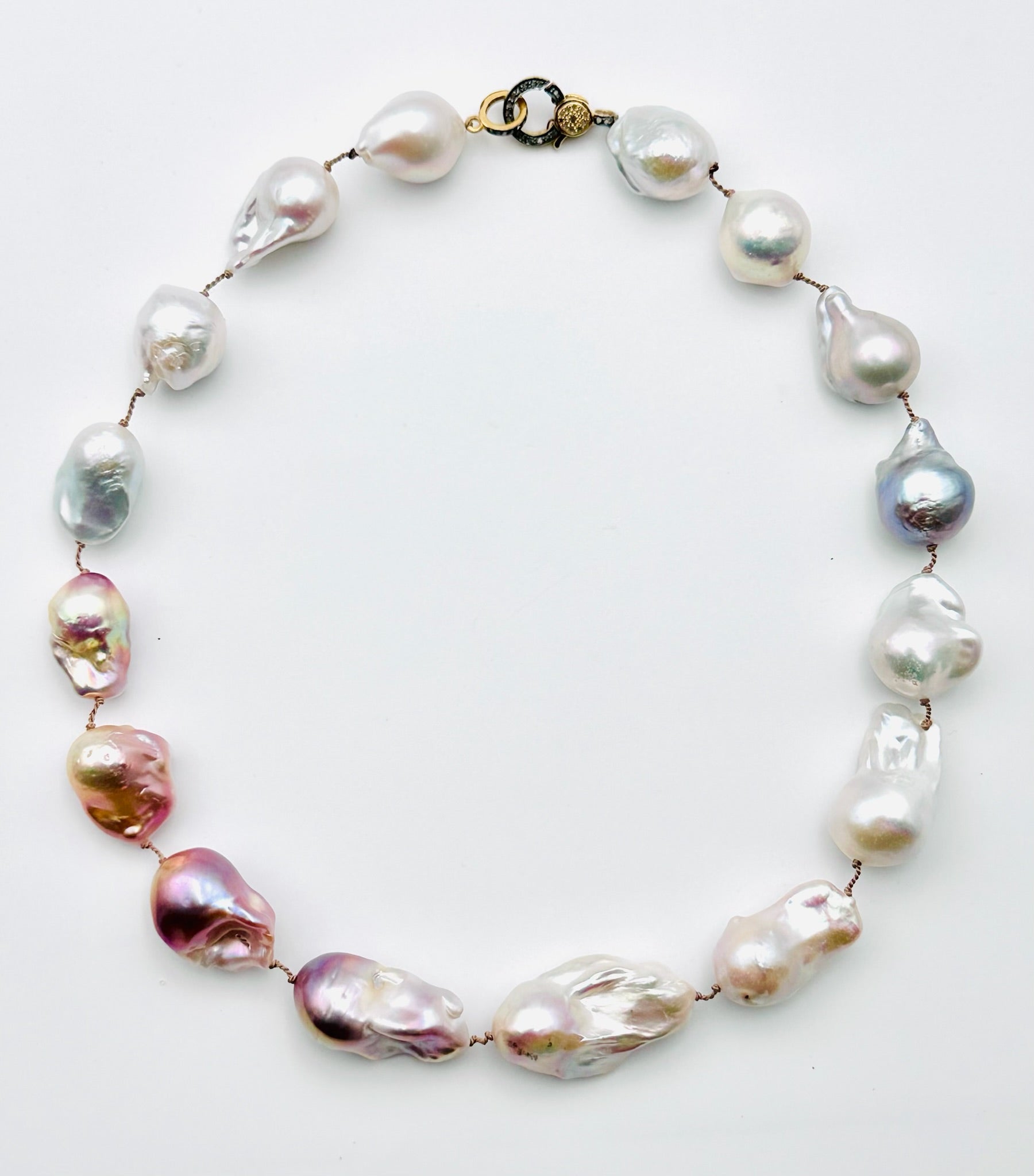 18" Ombre White, Natural and Grey Freshwater Baroque Pearl Necklace with a Two Tone Diamond Clasp