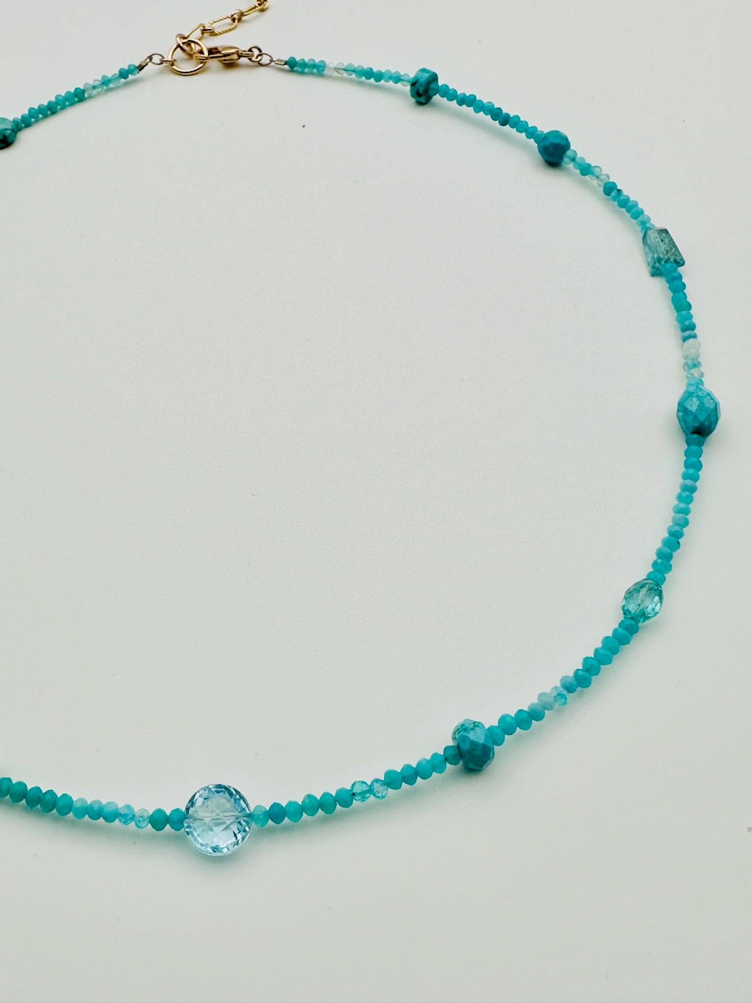 18" Opal, Blue Topaz, Turquoise, Apatite Combination Necklace