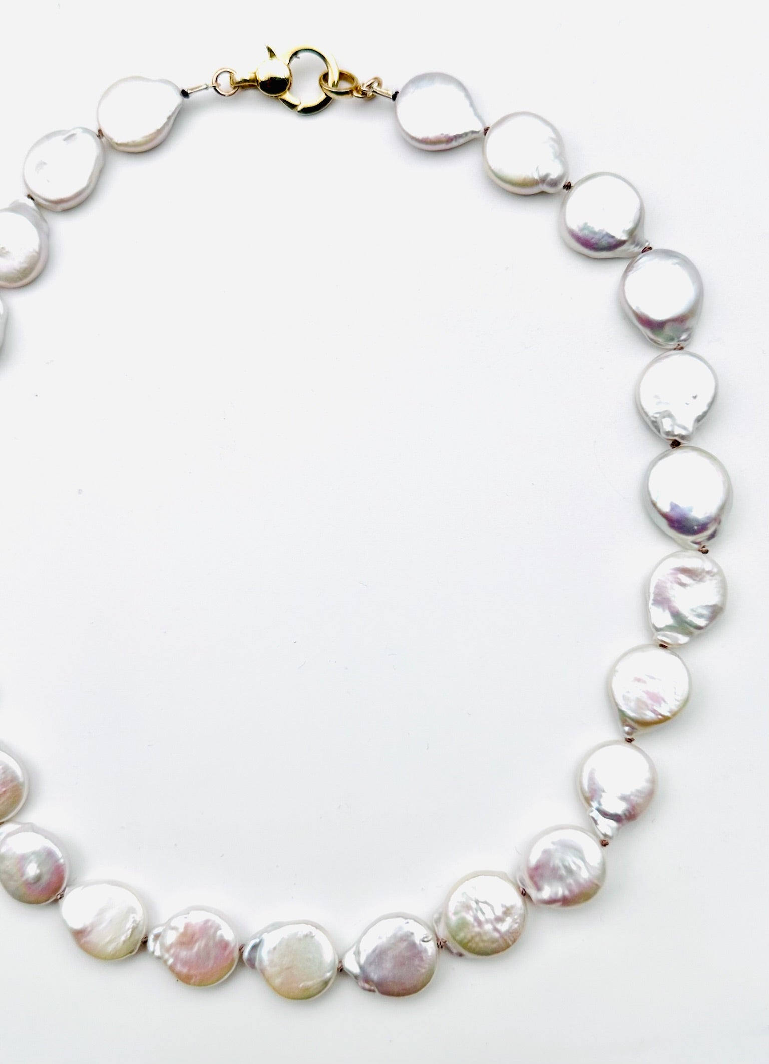 Organic Shaped White Freshwater Coin Pearl with Gold Vermeil (18k/sterling silver) Clasp, 18" length