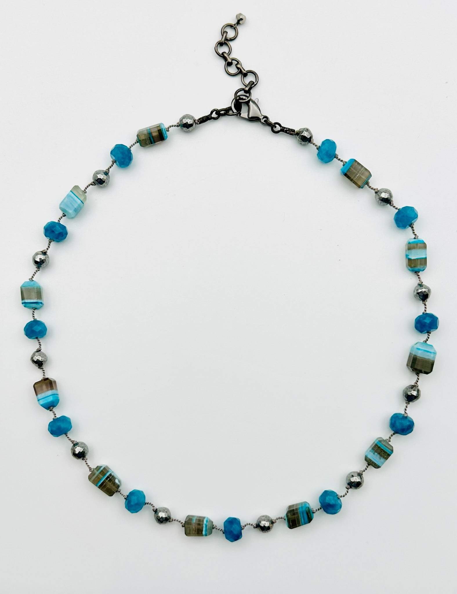 Peru Boulder Opal, Apatite Rondelle and Pyrite 18" length Necklace with Sterling Silver Clasp