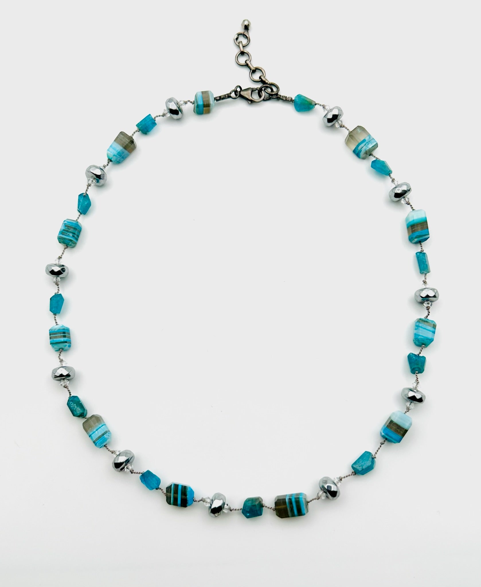 18" Peru Boulder Opal Neon Apatite and Pyrite Necklace with Sterling Silver