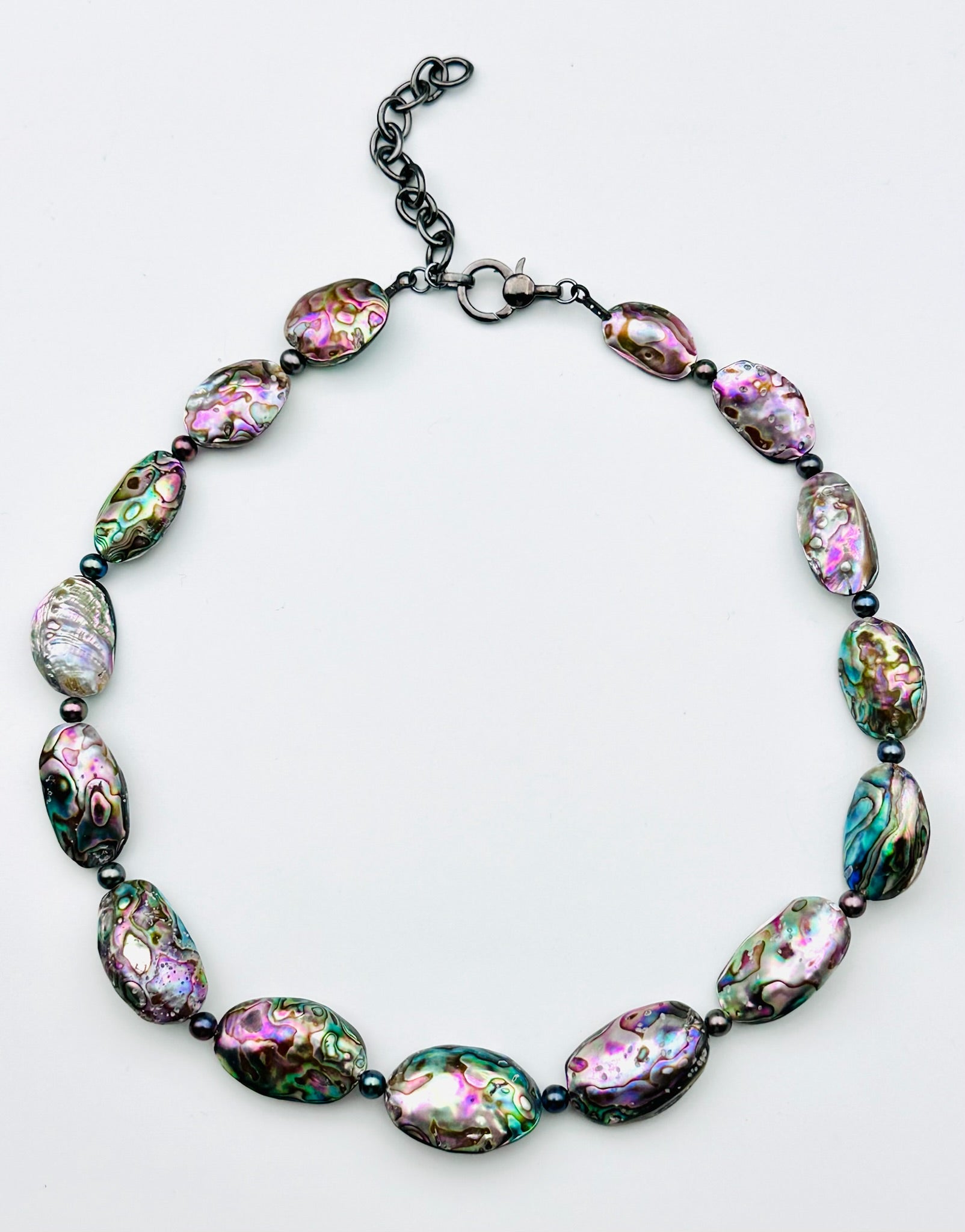 Puffy Abalone Nugget and Peacock Freshwater Pearl Necklace, 18" length