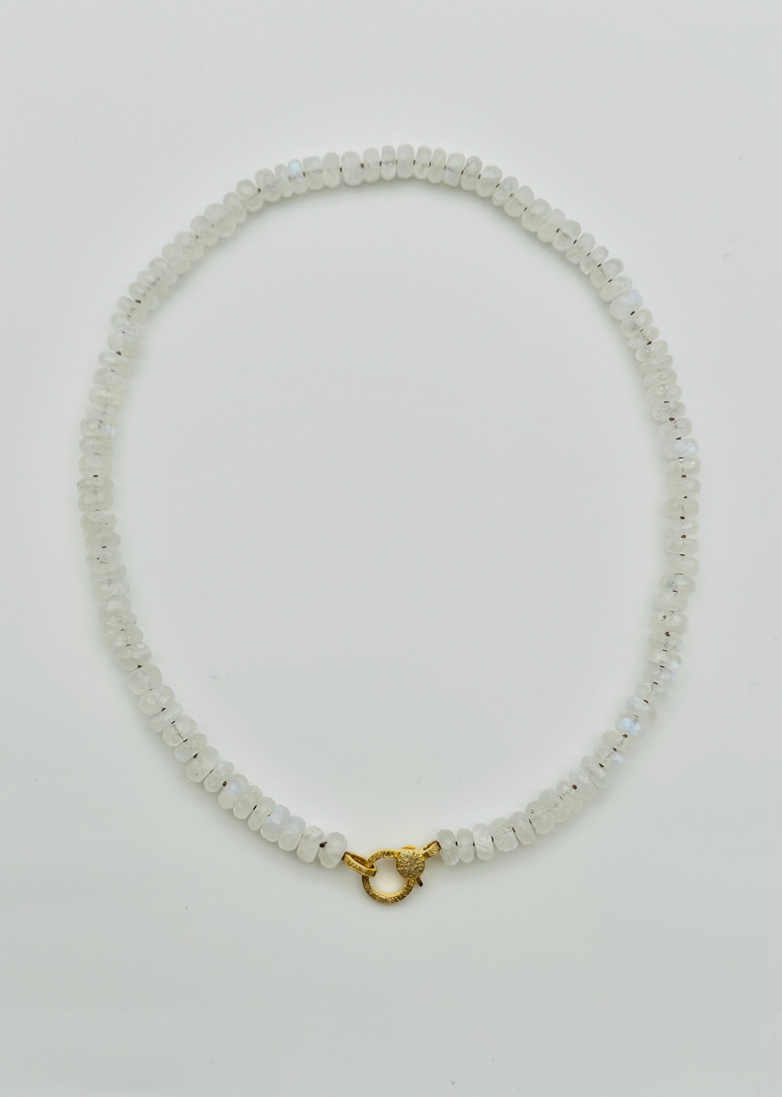 Rainbow Moonstone and Rondelle Diamond Necklace with Gold Vermeil, 18k/sterling silver, 18" Length