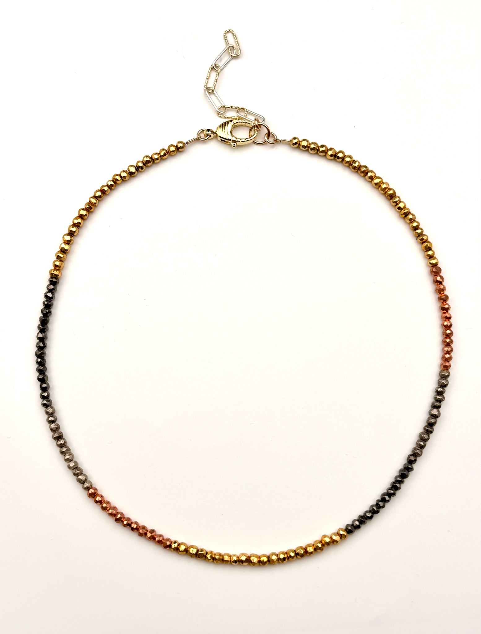 Rhodium, Yellow Gold, Rose Gold, Silver Mixed Pyrite Necklace with Gold Fill Clasp, 18" length