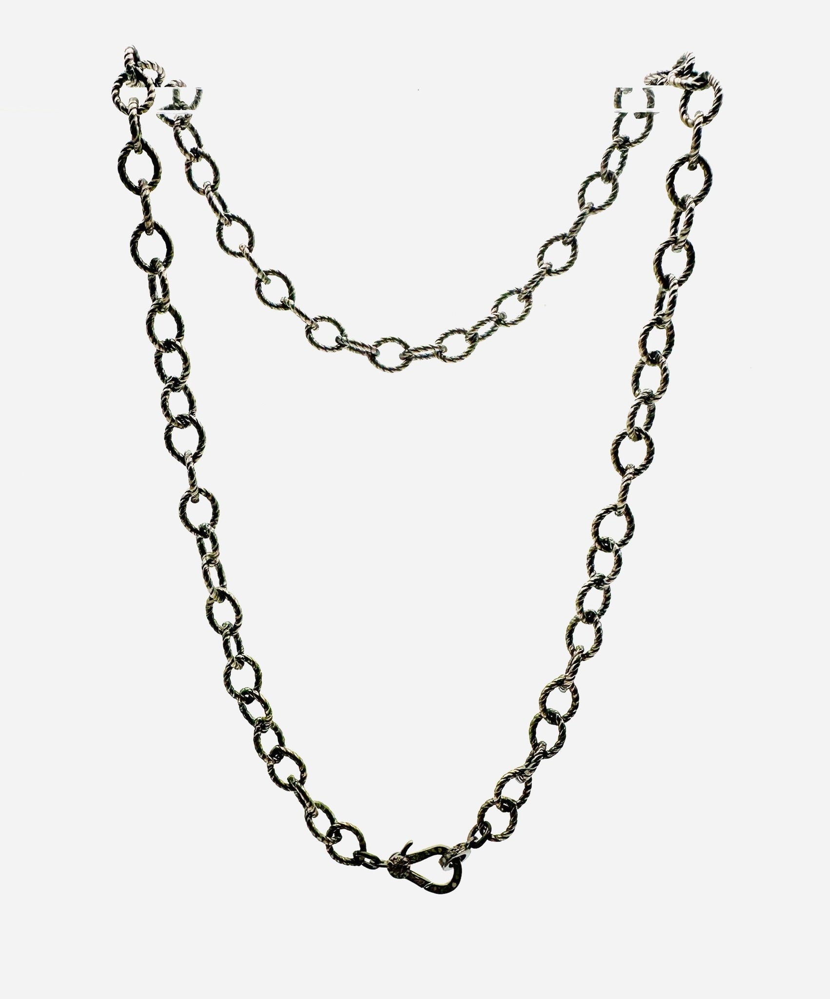 Textured Rhodium Chain and Sterling Silver with Diamond Teardop Shaped Clasp, 18" Length