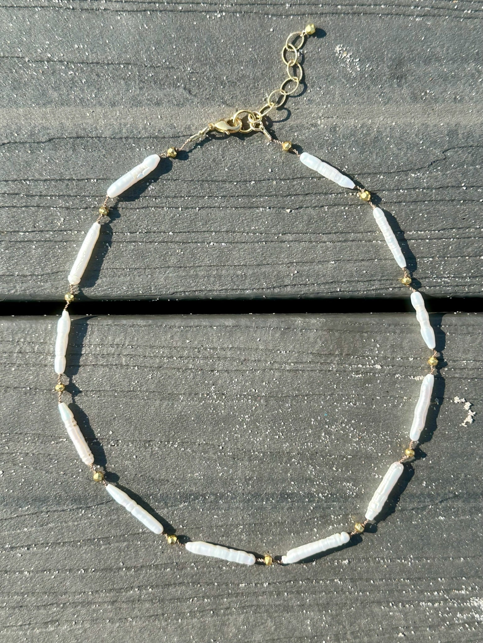 Tube Freshwater Pearl Gold Faceted Pyrite Necklace 18" Length