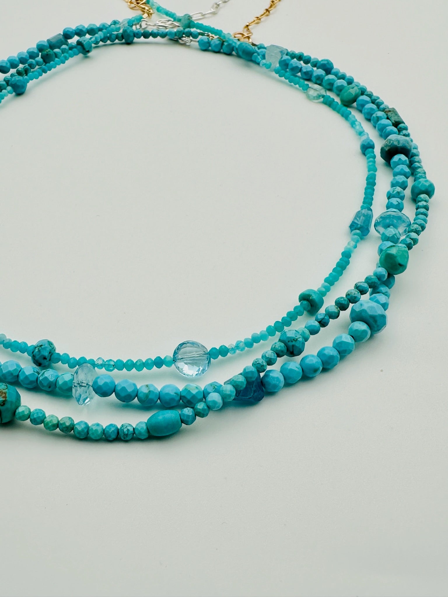 Turquoise, Apatite, and Aquamarine Necklace with Sterling Silver, 18" Length