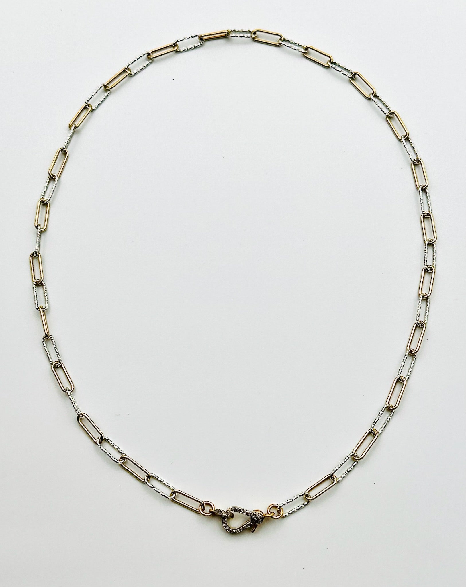 18" Two Tone Gold Vermeil and Bright/White Silver Diamond Cut Paperclip Chain with Teardrop Diamond Clasp