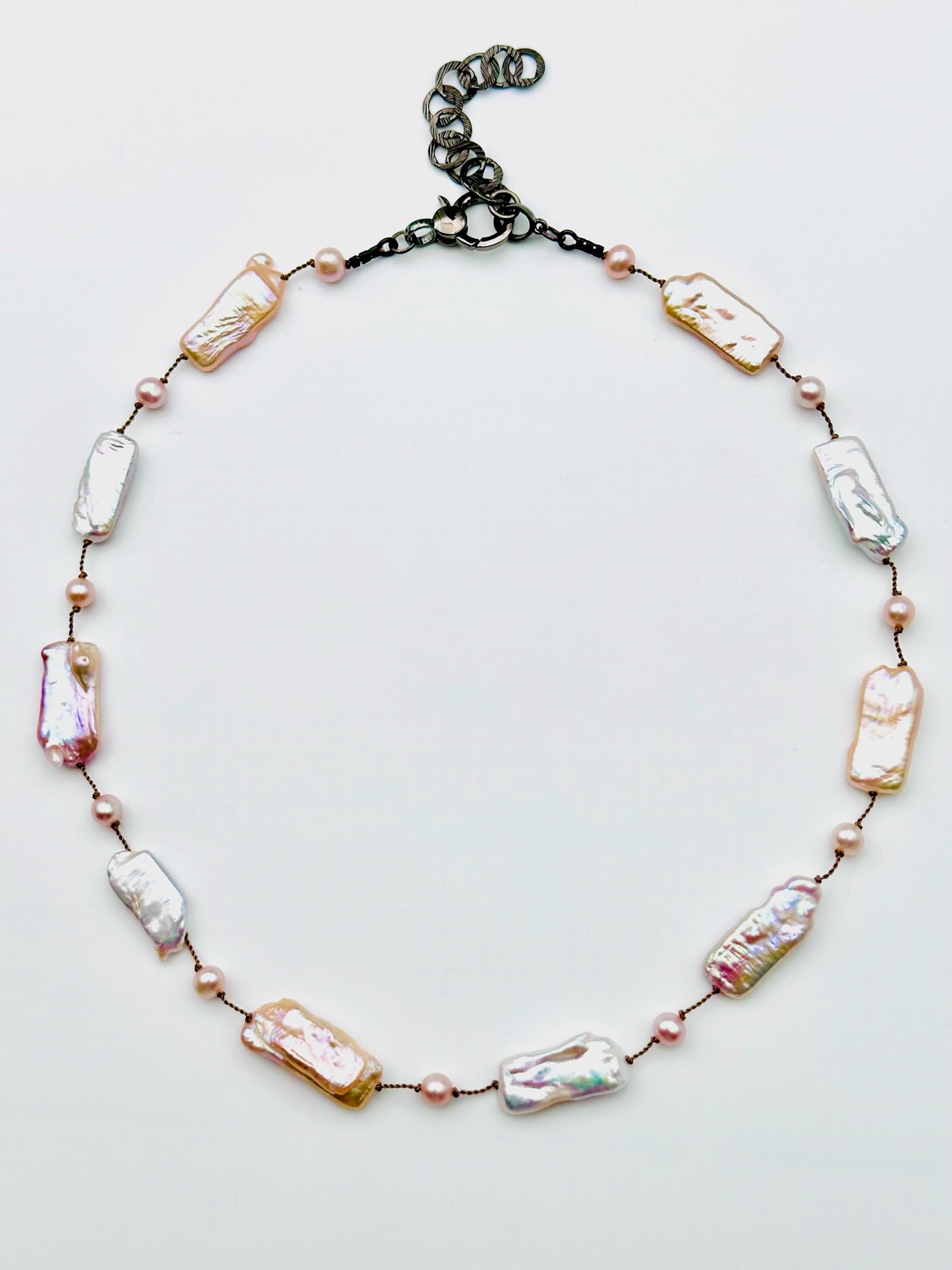 White, Pink and Lavender Biwa Freshwater Pearl Necklace with Sterling Silver Clasp, 18" length