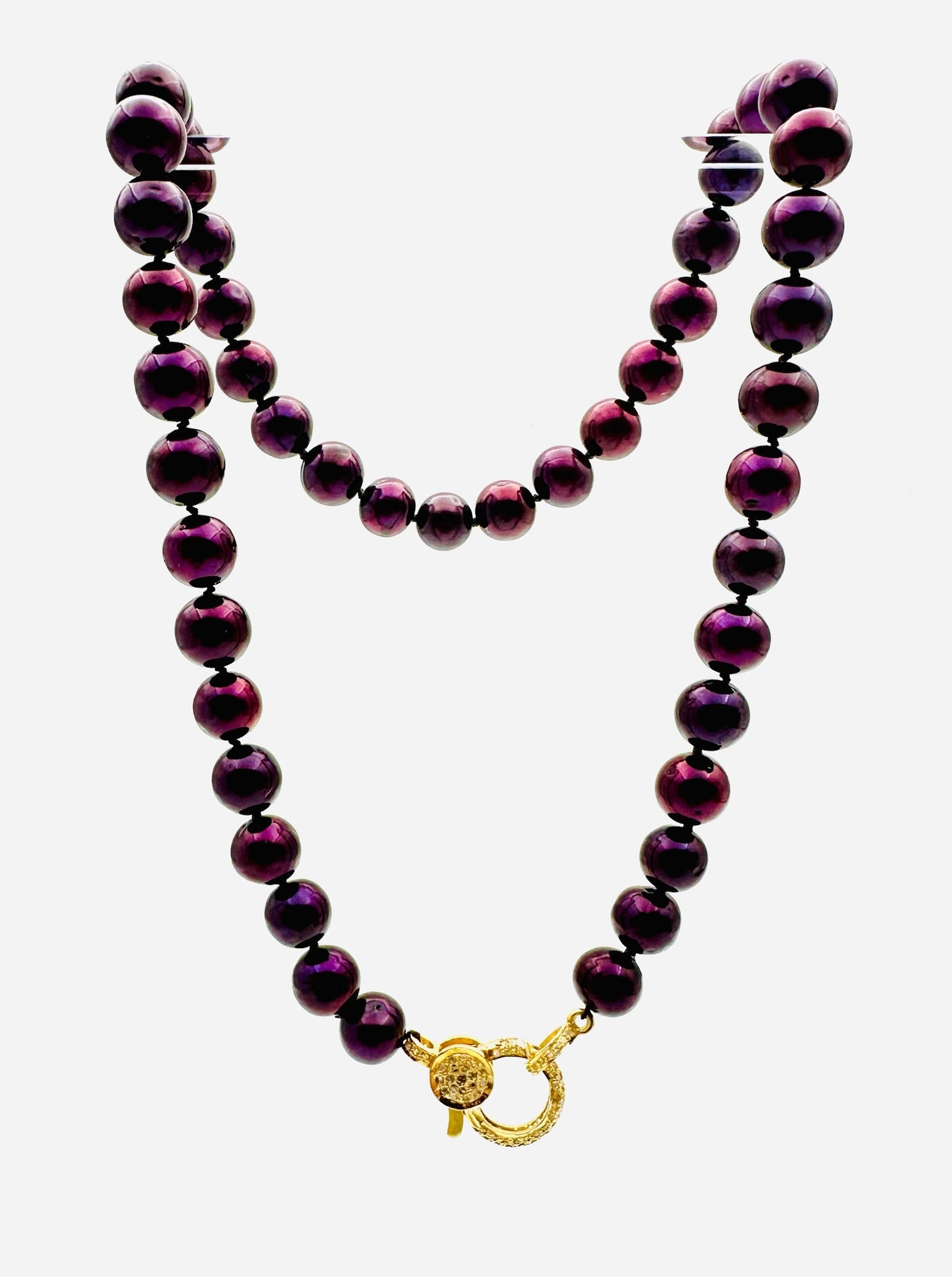 8-9 mm Purple Round Fwp Necklace with Gold Gold Vermeil Diamond Clasp, 18k/Sterling Silver, 18" length