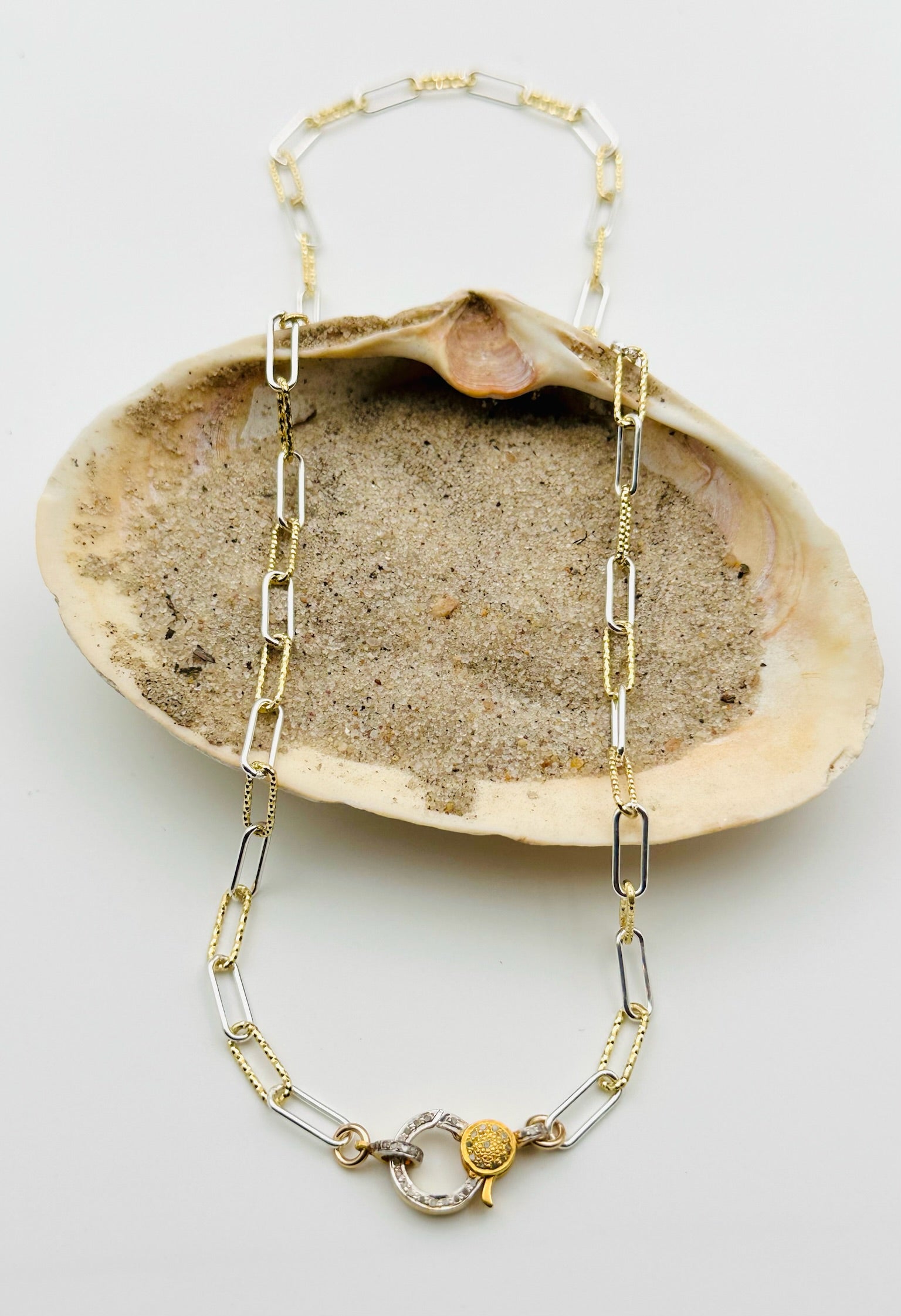 2 Tone Vermeil and Bright/White Silver Diamond Cut Paperclip Chain with Two Tone Diamond Clasp 18"