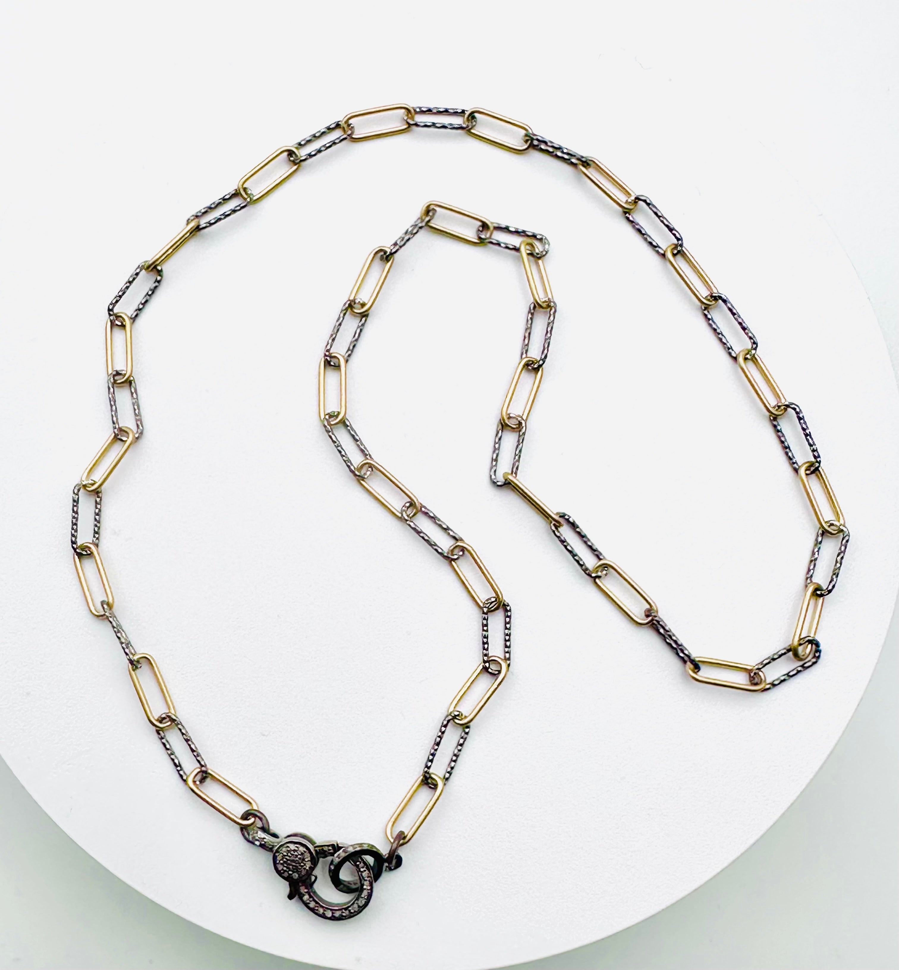 20" 18K YG Vermeil and Rhodium Diamond Cut Paperclip Chain with Sterling Silver Diamond Clasp