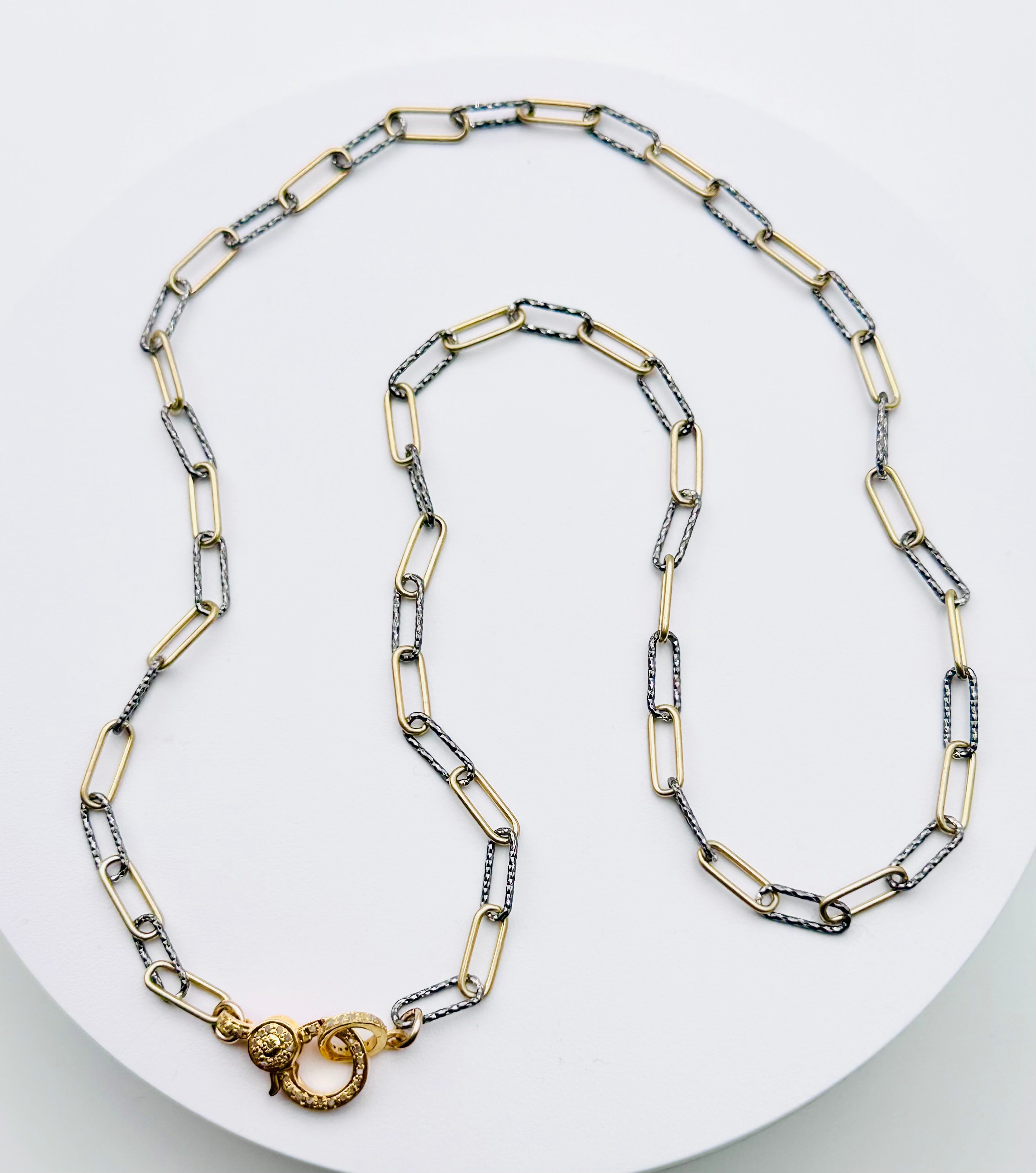 18K YG Gold Vermeil (18k/sterling silver) and Rhodium Diamond Cut Paperclip Chain with Gold Vermeil (18k/sterling silver) Diamond Clasp, 22" length. available in additional lengths