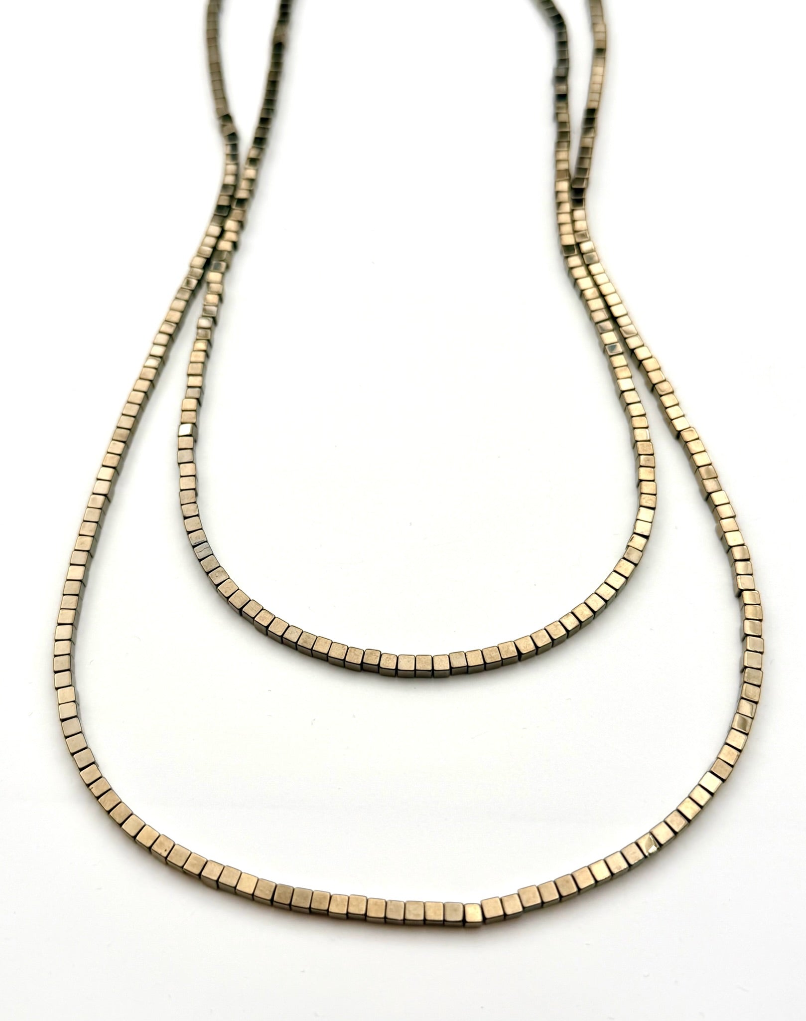 24" Bronze 3mm Square Pyrite Necklace