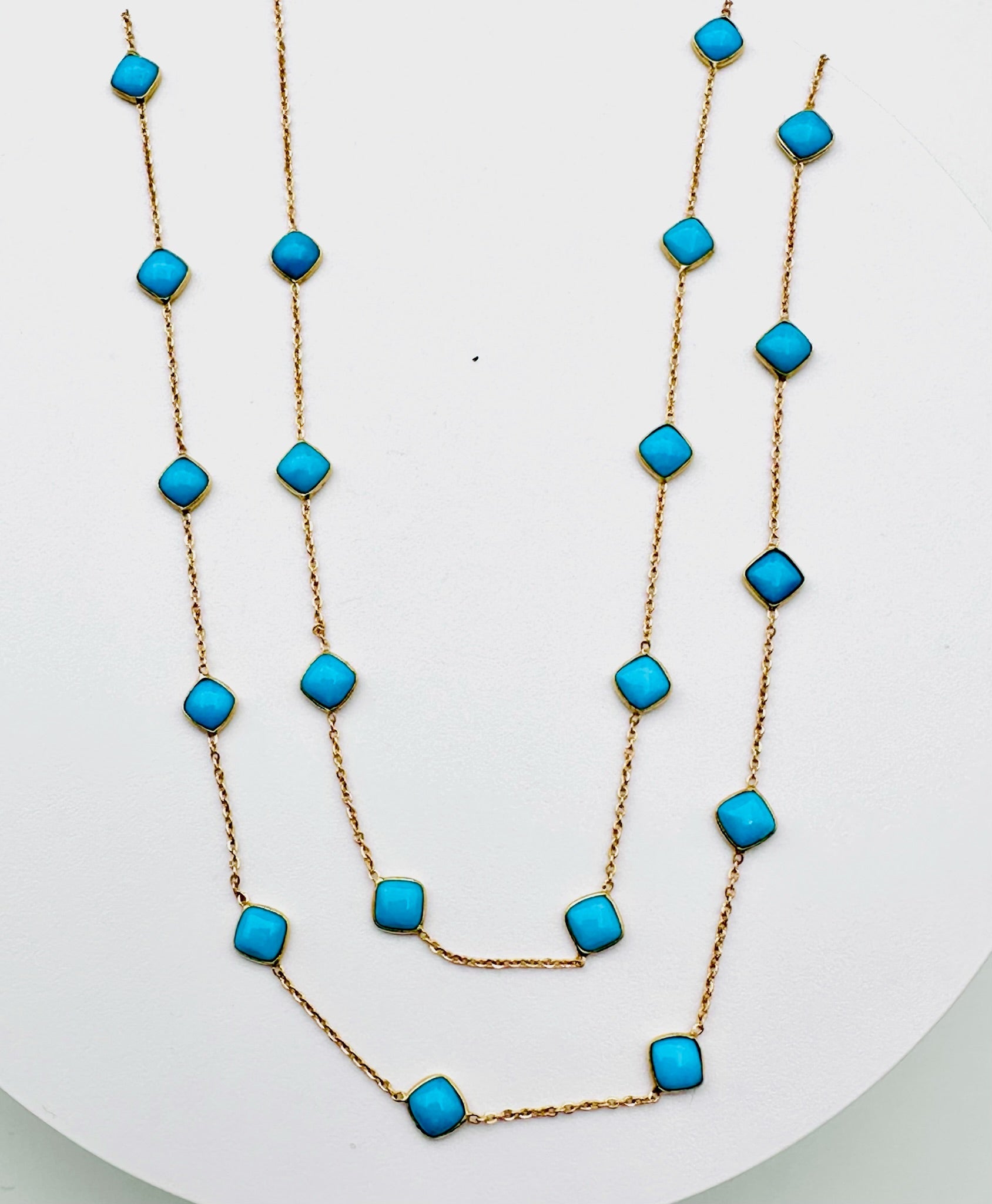 14K Yg Natural Turquoise Chain Necklace, 35" length
