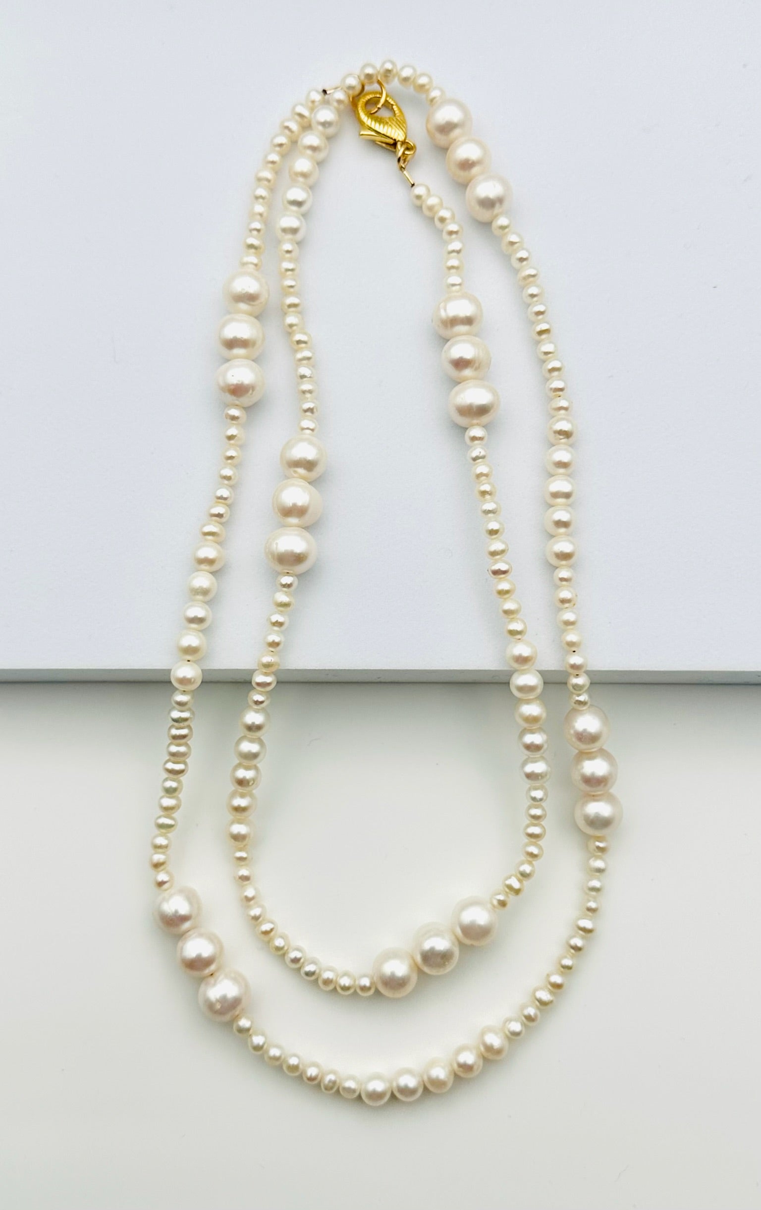 36" 4mm, 6mm and 10mm Freshwater Pearl Combination with Gold Fill Clasp
