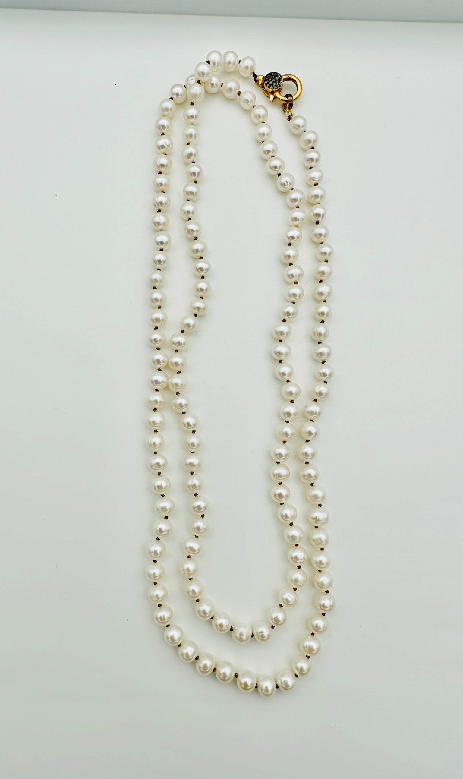 6mm Round Pearl Necklace with Gold Vermeil, 18k/sterling silver Diamond Clasp, 36" Length