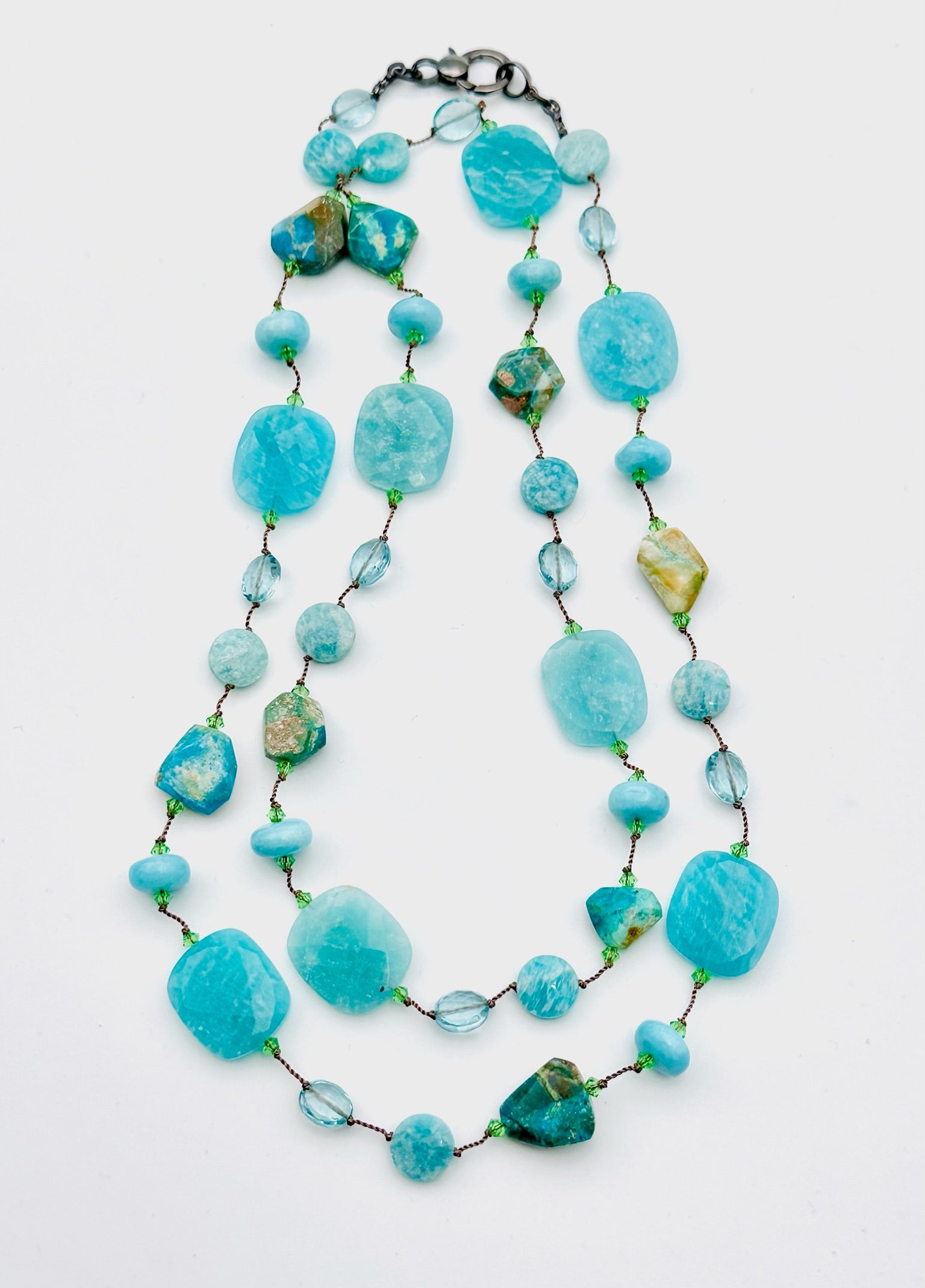 36" Faceted Amazonite, Peruvian, Opal and Green Amethyst Necklace