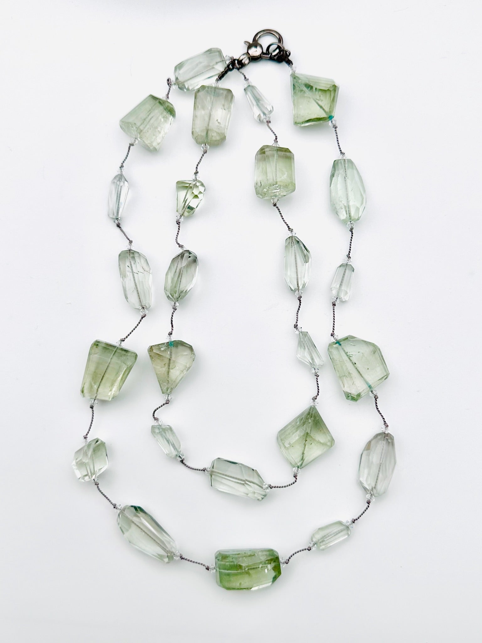 Faceted Multi Organic Shaped Green Amethyst Necklace with Sterling Silver Clasp, 36" length