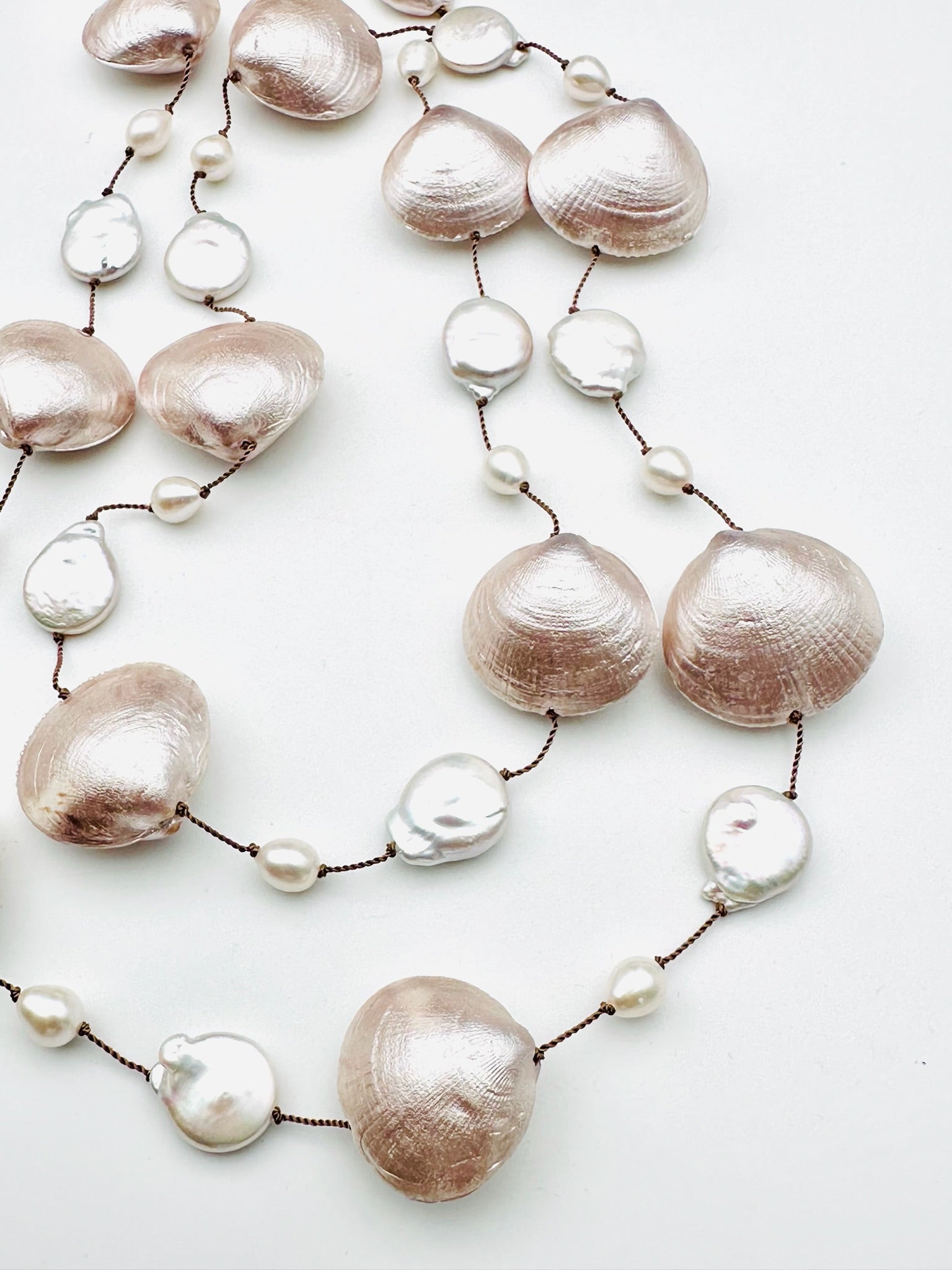 36" Iridescent Clamshell and Freshwater Pearl Necklace with Sterling Silver Clasp