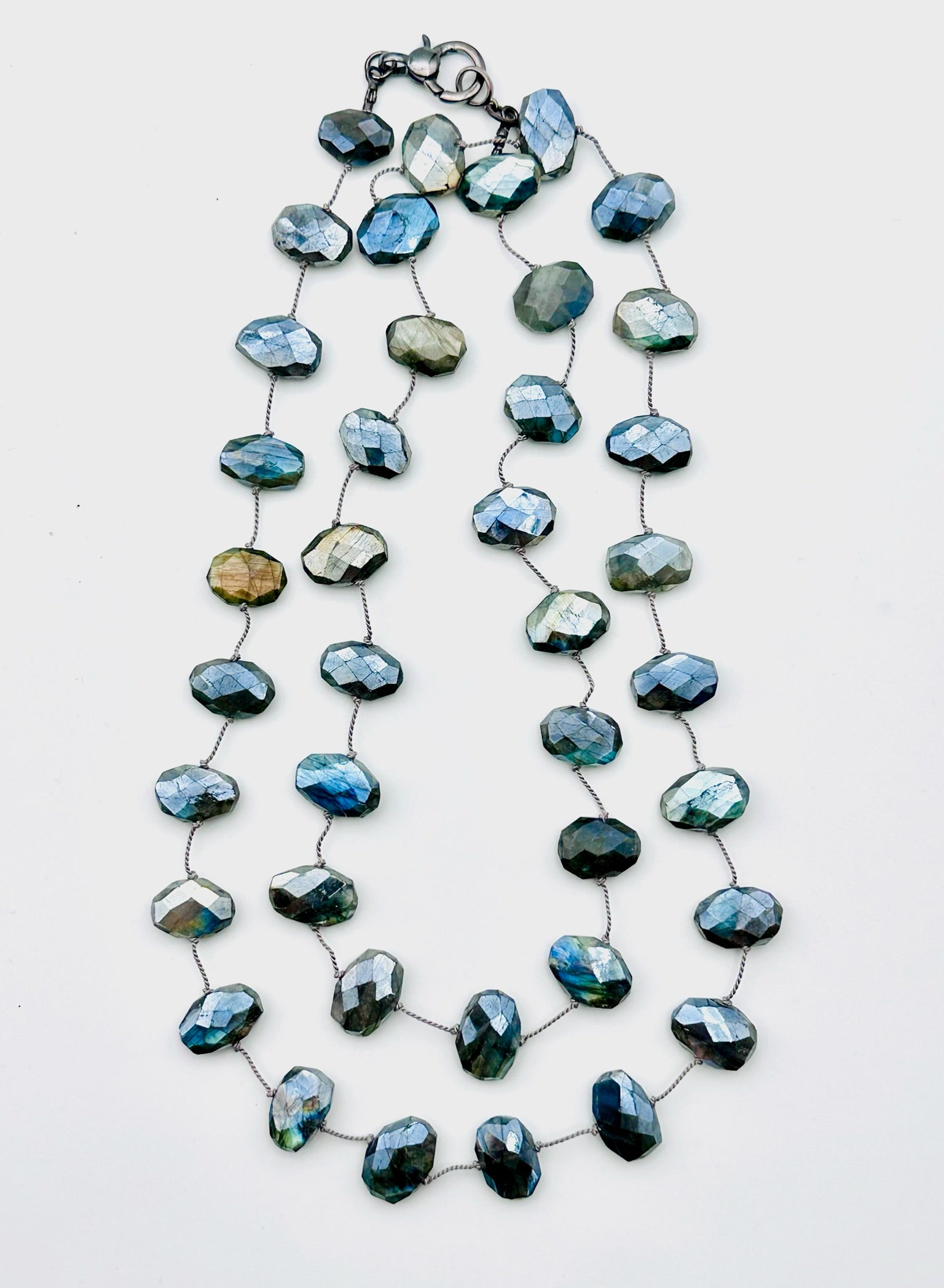 Mystic Coated Flat Labradorite Necklace, 36" length