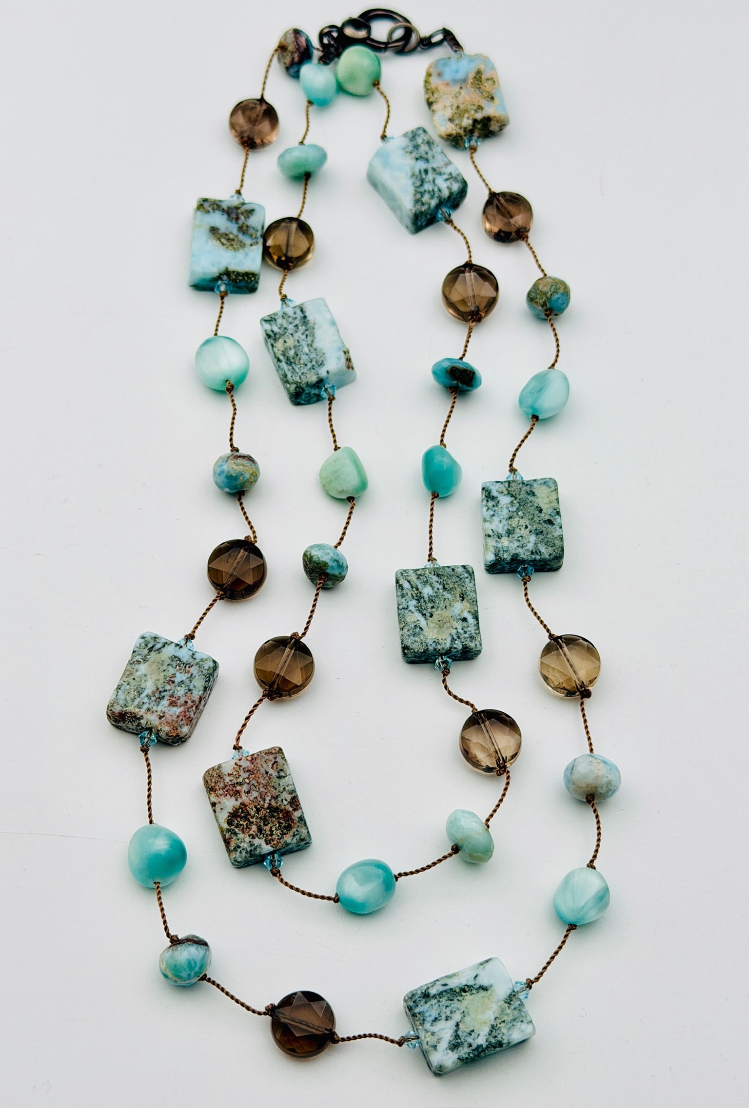 36" Organic and Smooth Larimar and Smokey Quartz Combo Necklace