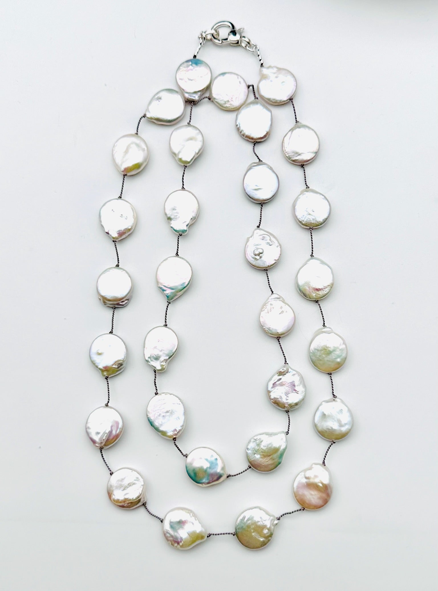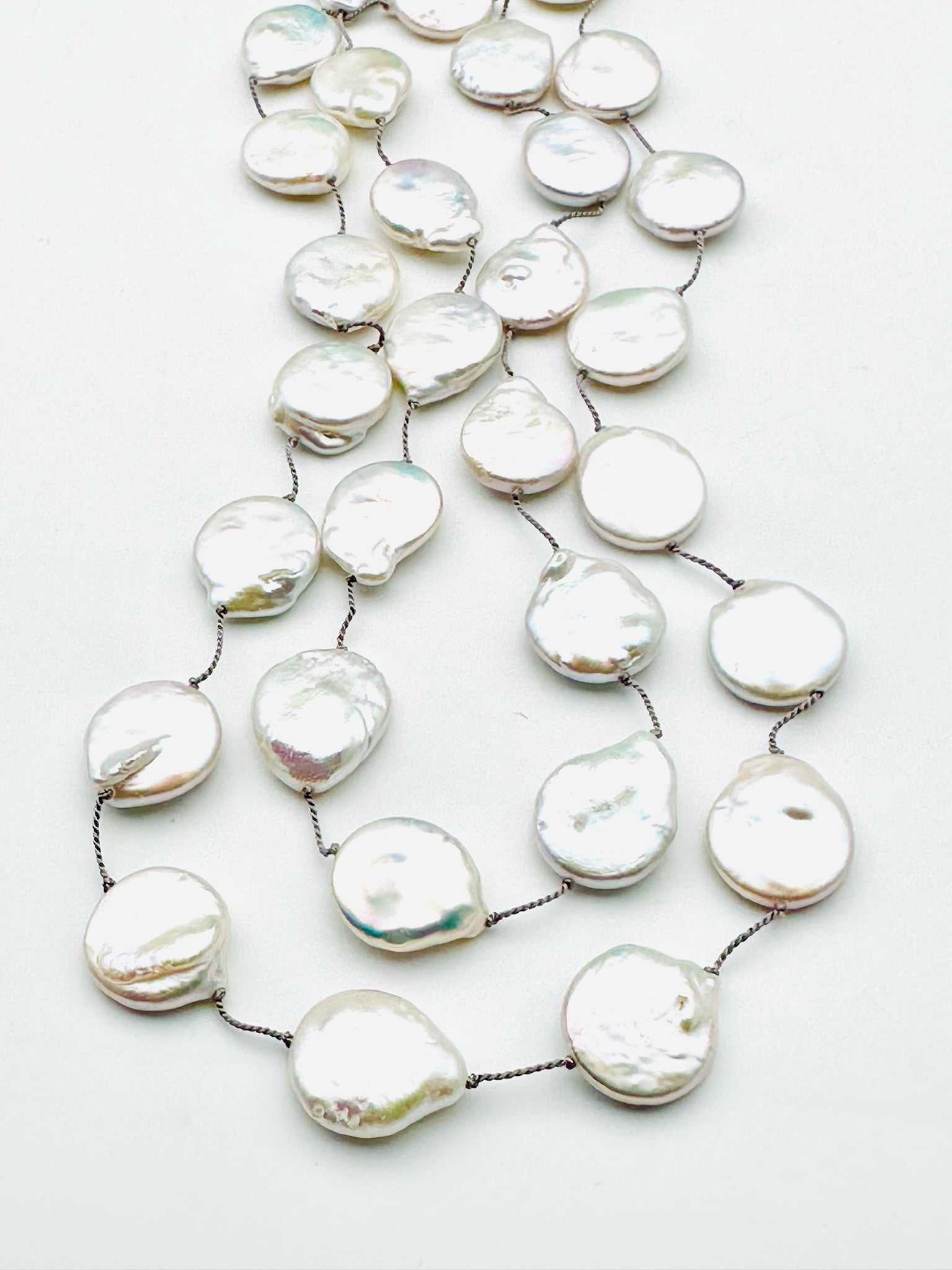 36" Organic Shaped 15-20mm White Freshwater Coin Pearl Necklace