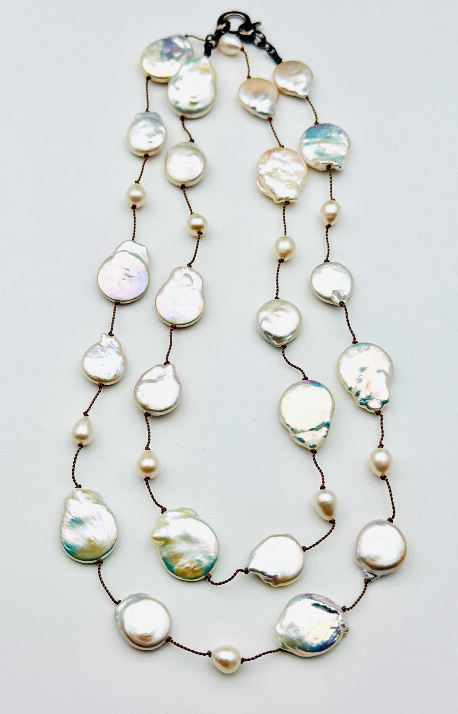 36" Organic White Freshwater Mixed Size Coin Pearl Necklace with Steling Silver Clasp