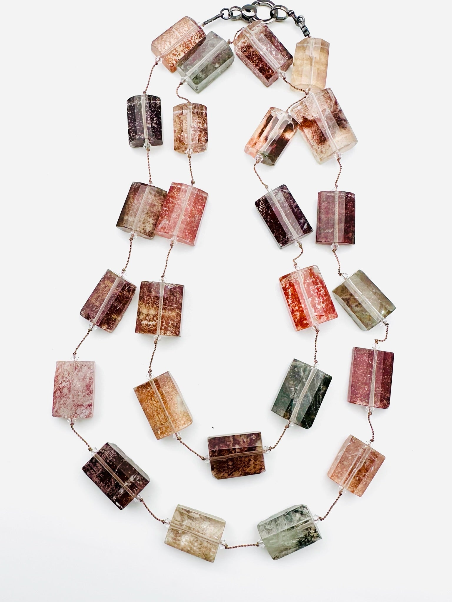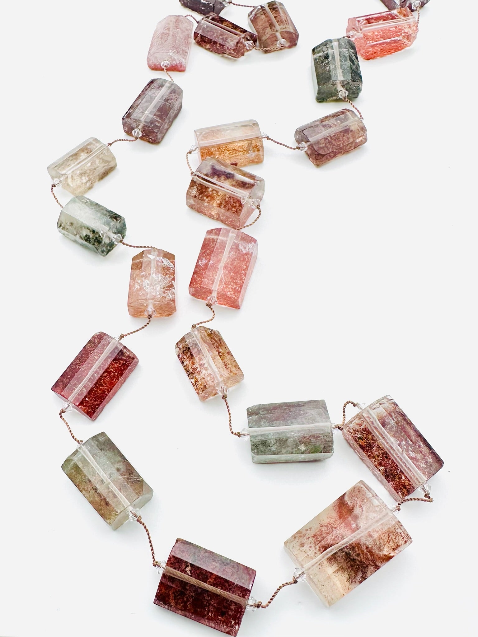 36" Phantom Lodalite Rectangular Quartz Necklace with Sterling Silver Clasp