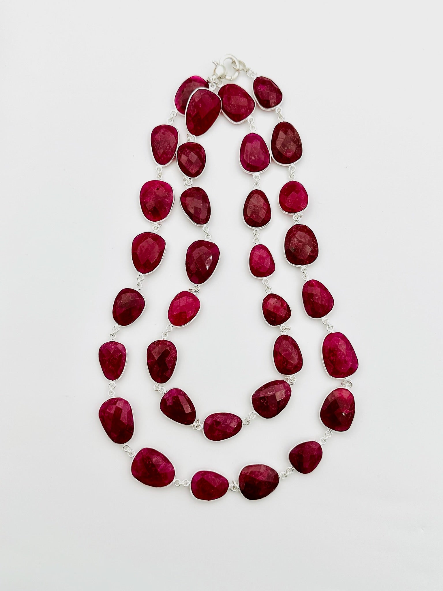 36" Ruby Quartz Polished Stone Chain with Sterling Silver