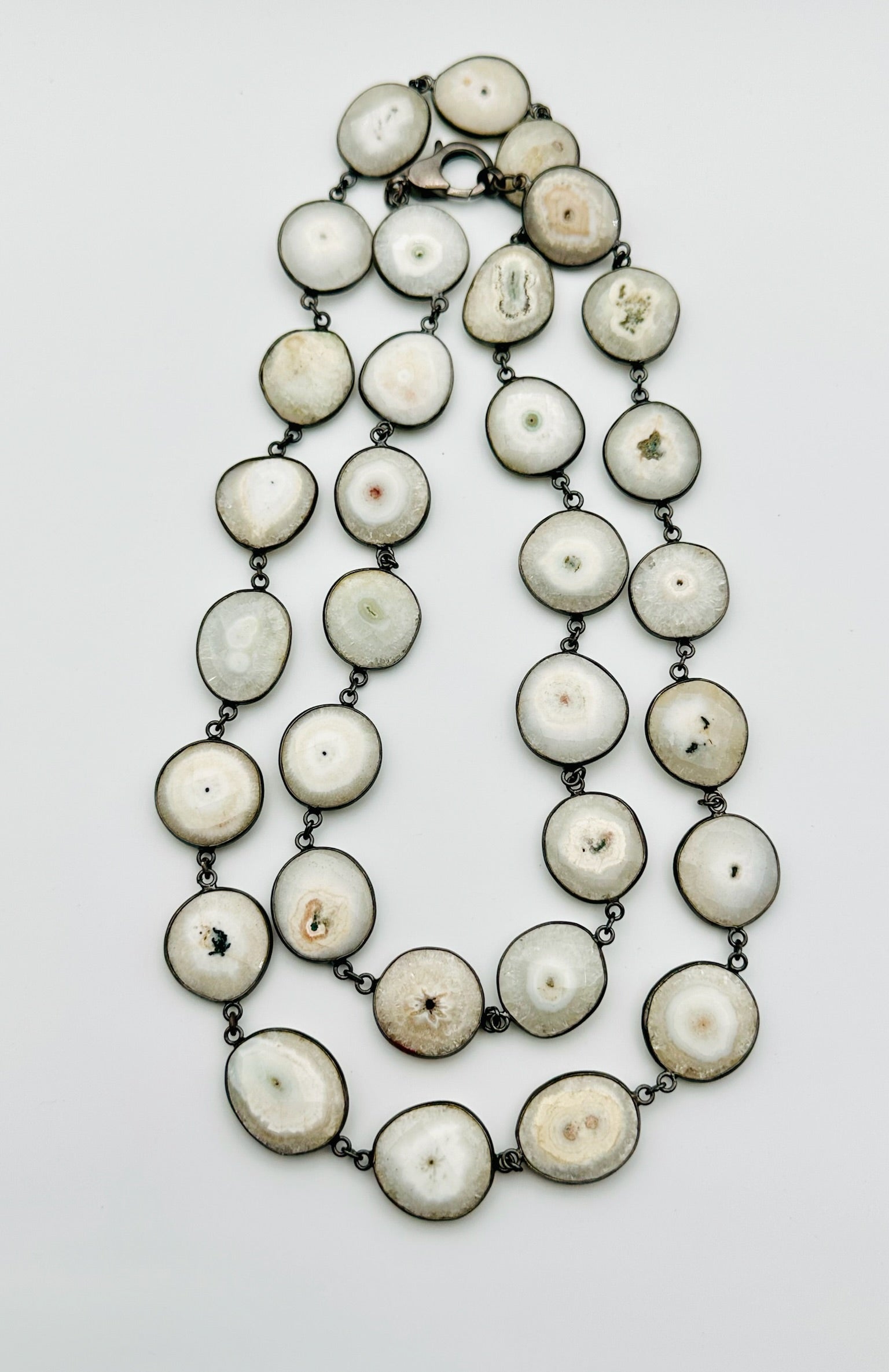 36" Solar Quartz Bezeled Rhodium Sterling Silver Necklace