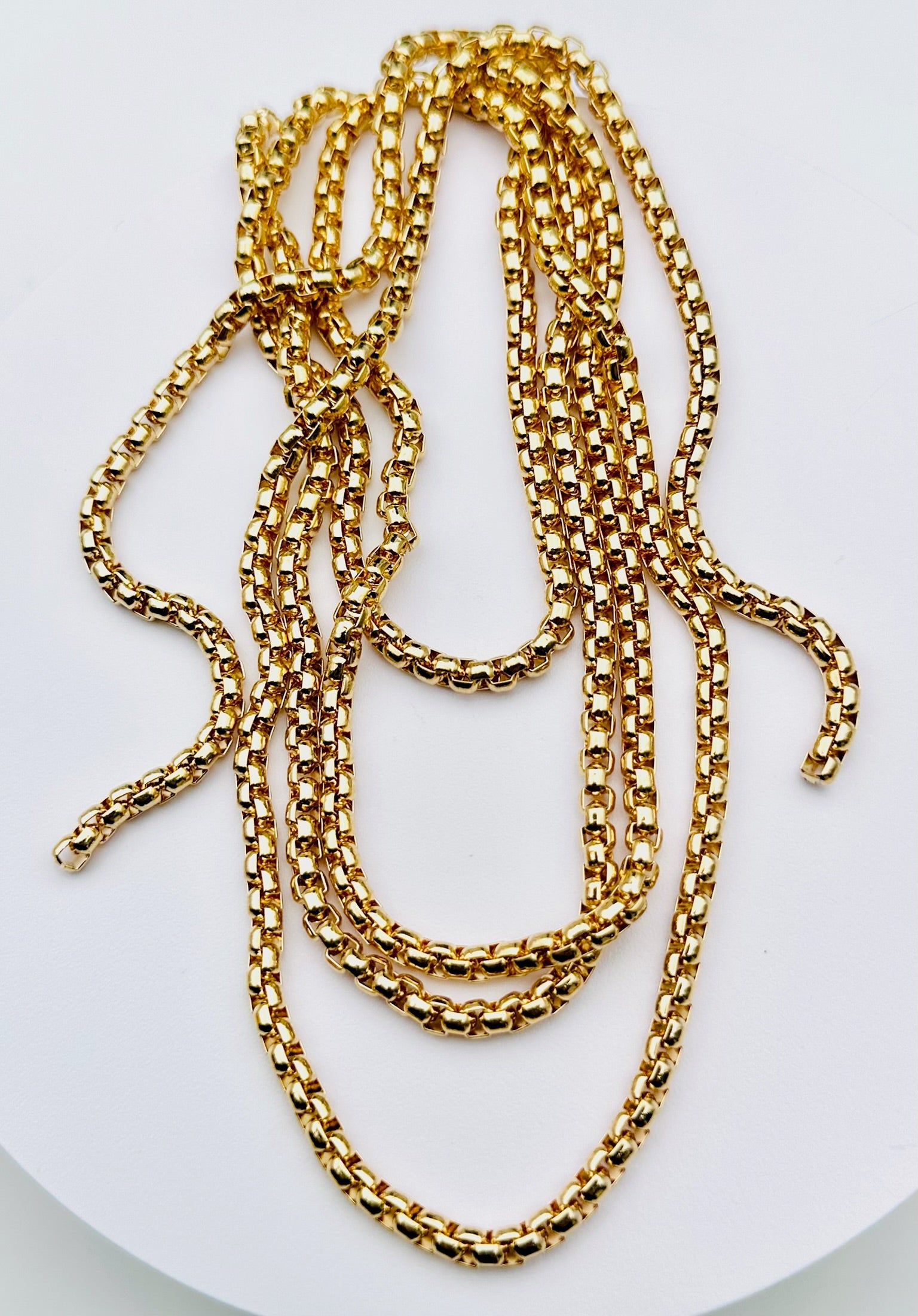 4mm 18K Gold Plated Box Chain Open-Ended Lariat, Brass, 53" length