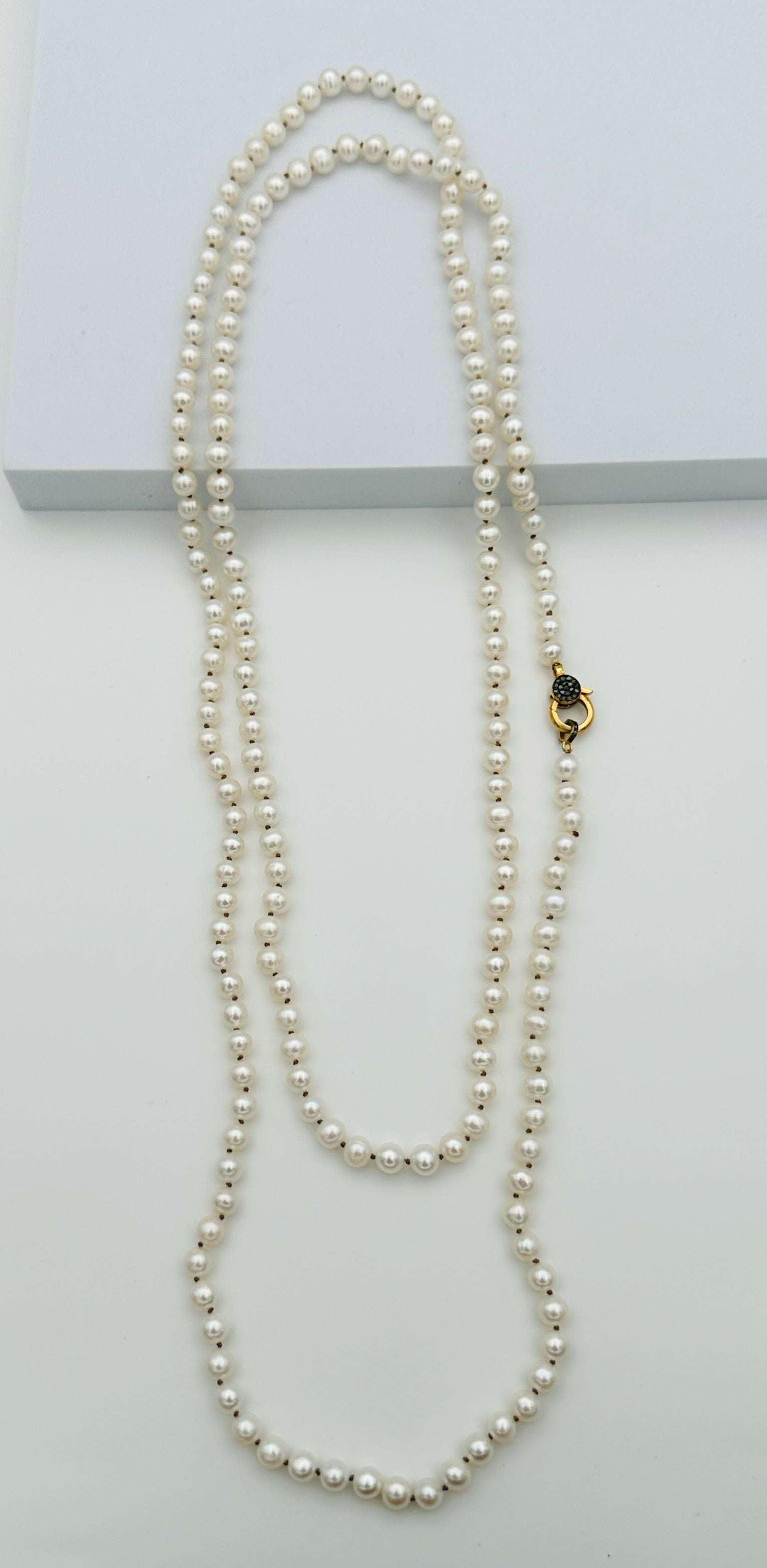 53" 6mm Round Freshwater Pearl Necklace with Two Tone Diamond Clasp