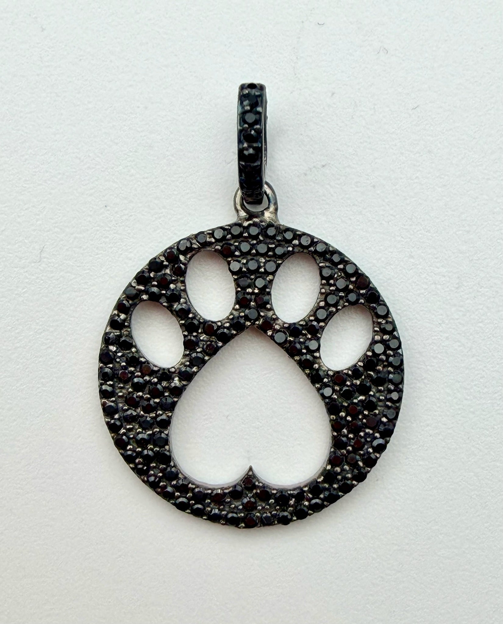 Black Spinel Dog Paw Sterling Silver Pendant, 1.5"