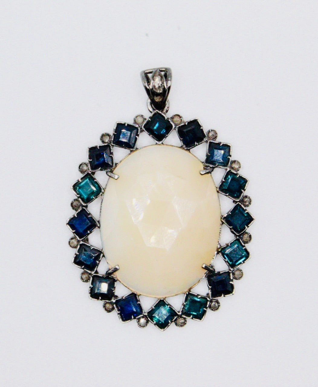 Blue Sapphire Diamond Oval Pendant Pendant with Sterling Silver