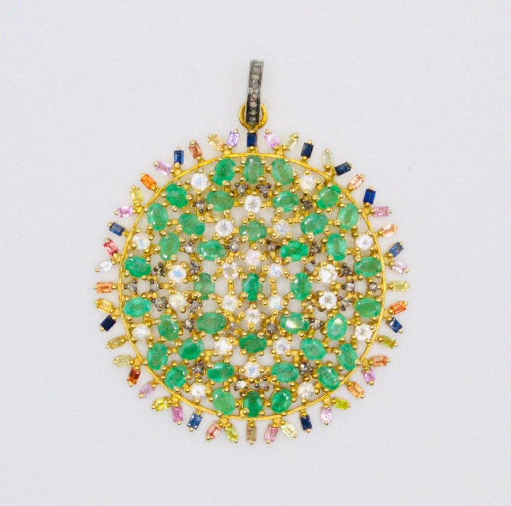 Emerald Multicolor Sapphire Diamond Pendant with Gold Vermeil