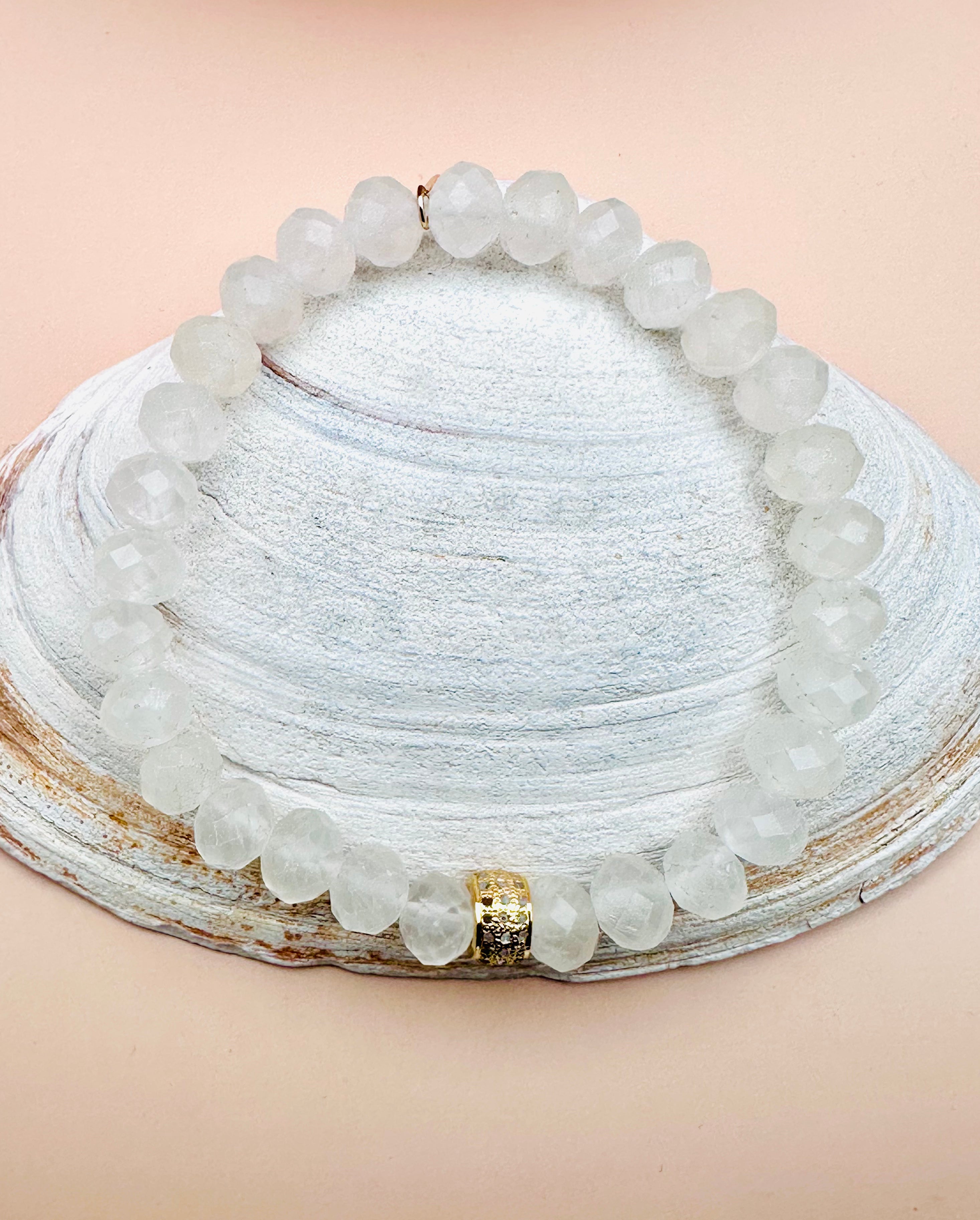 Faceted 8mm Mystic Moonstone Rondelle Stretch Bracelet with a Triple Width Vermeil Diamond Rondelle
