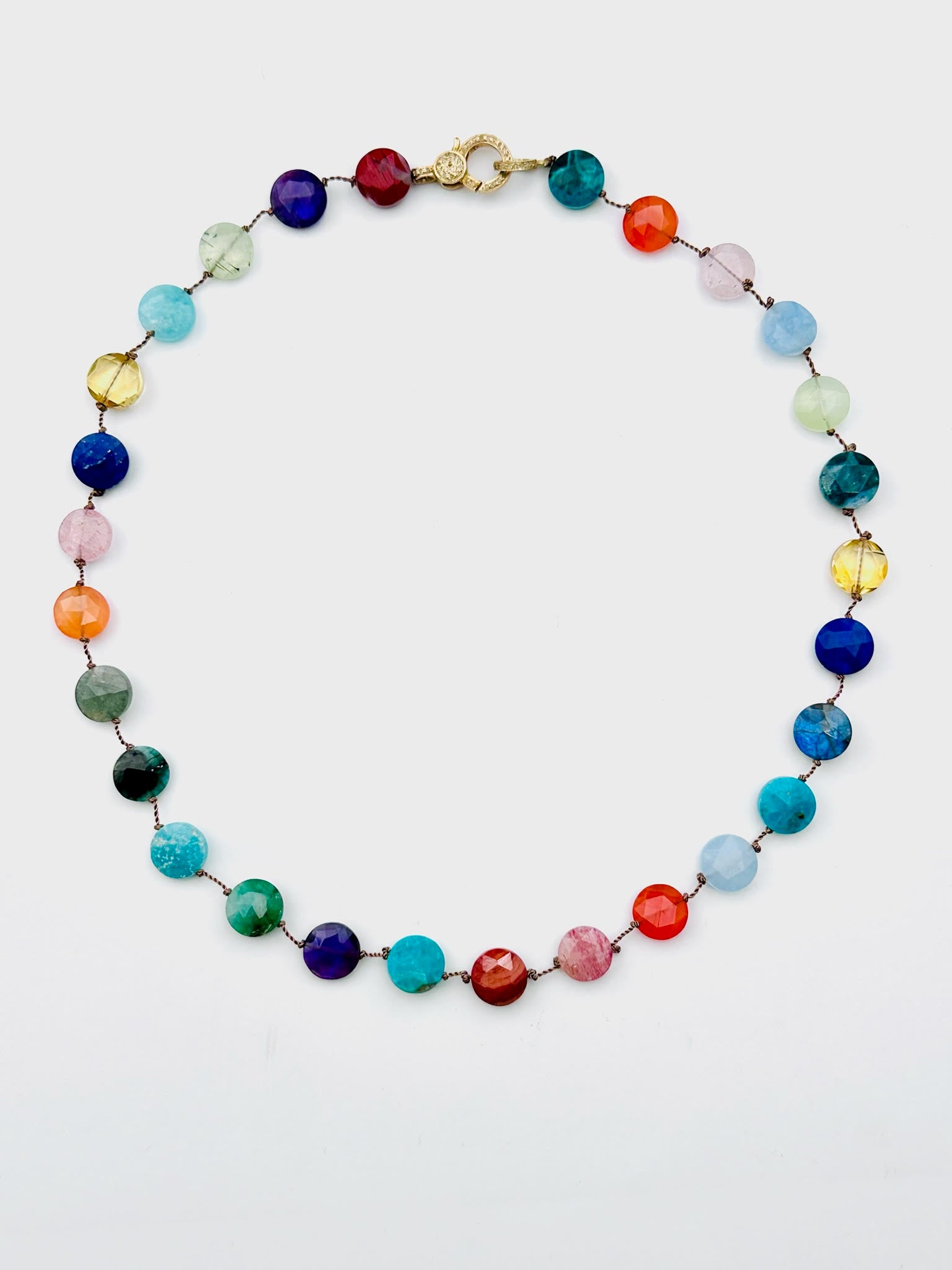 Faceted Coin Multi Gemstone Necklace with Vermeil and Diamond Clasp, 18"