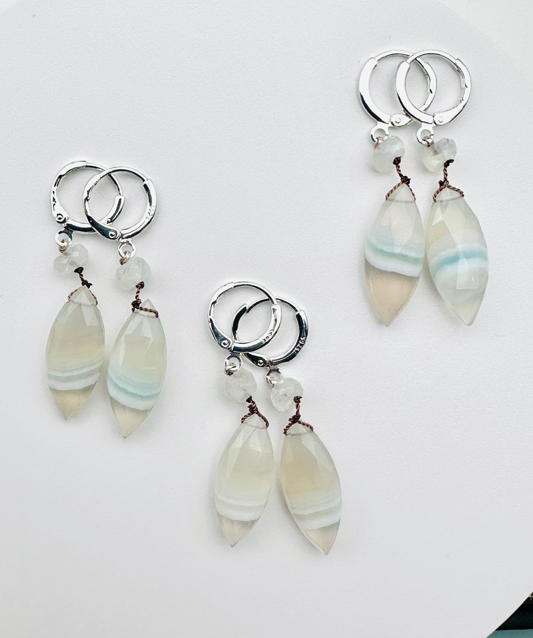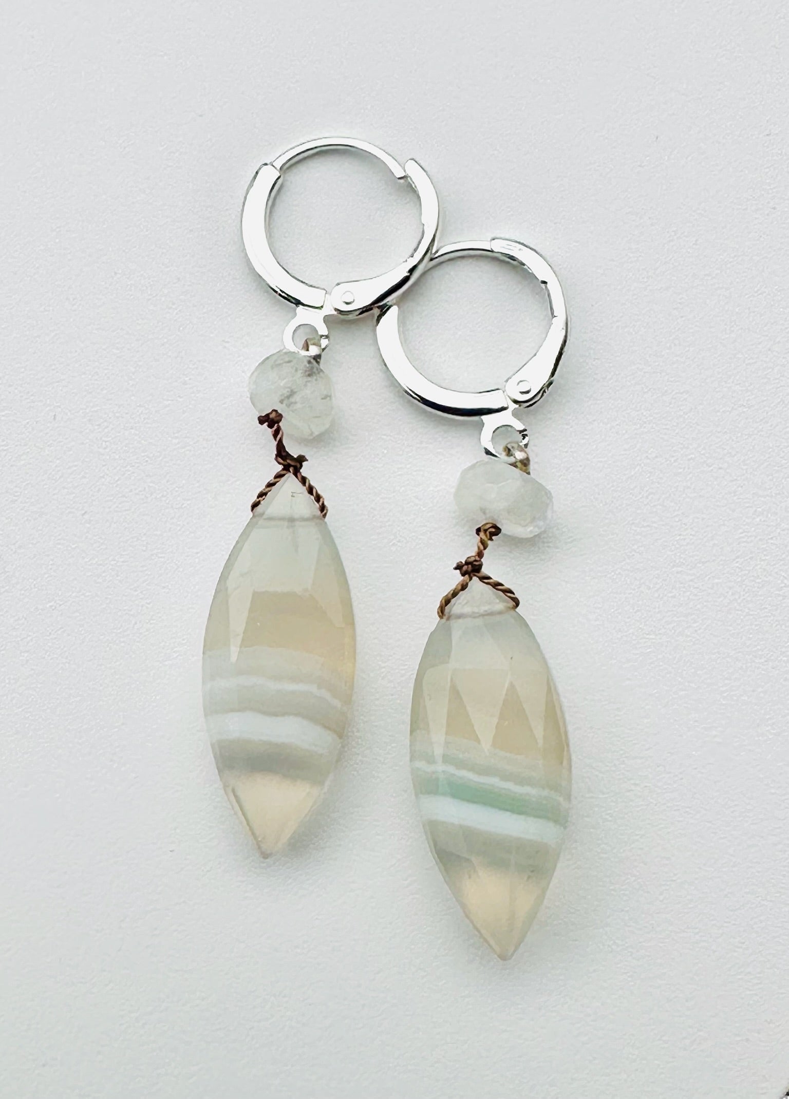 Faceted Marquise Shaped Opal and Moonstone Sterling Silver Huggie Earring, 2.25"