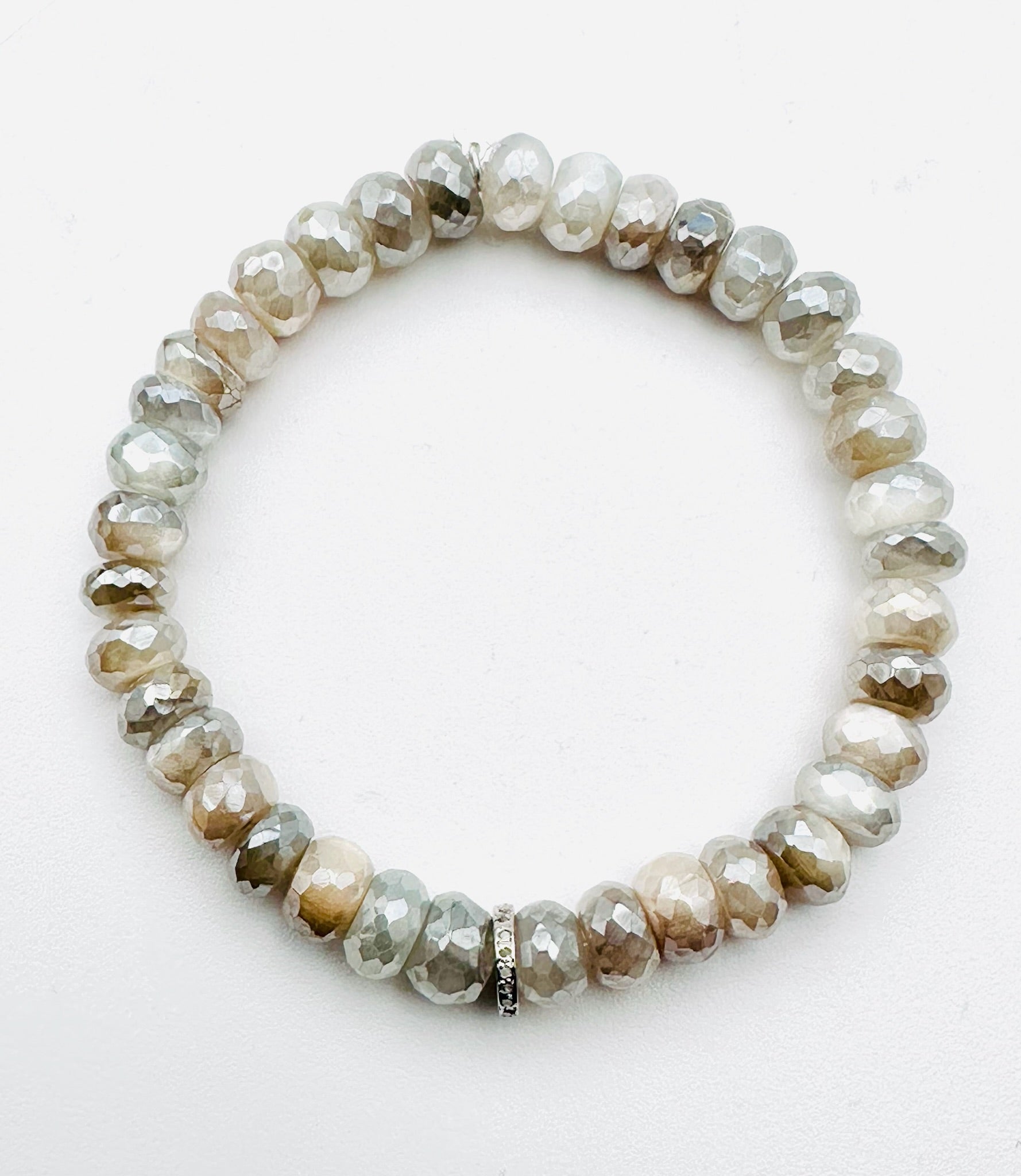 Faceted Mystic Silverite Rondelle Bracelet with Sterling Silver Diamond Rondelle