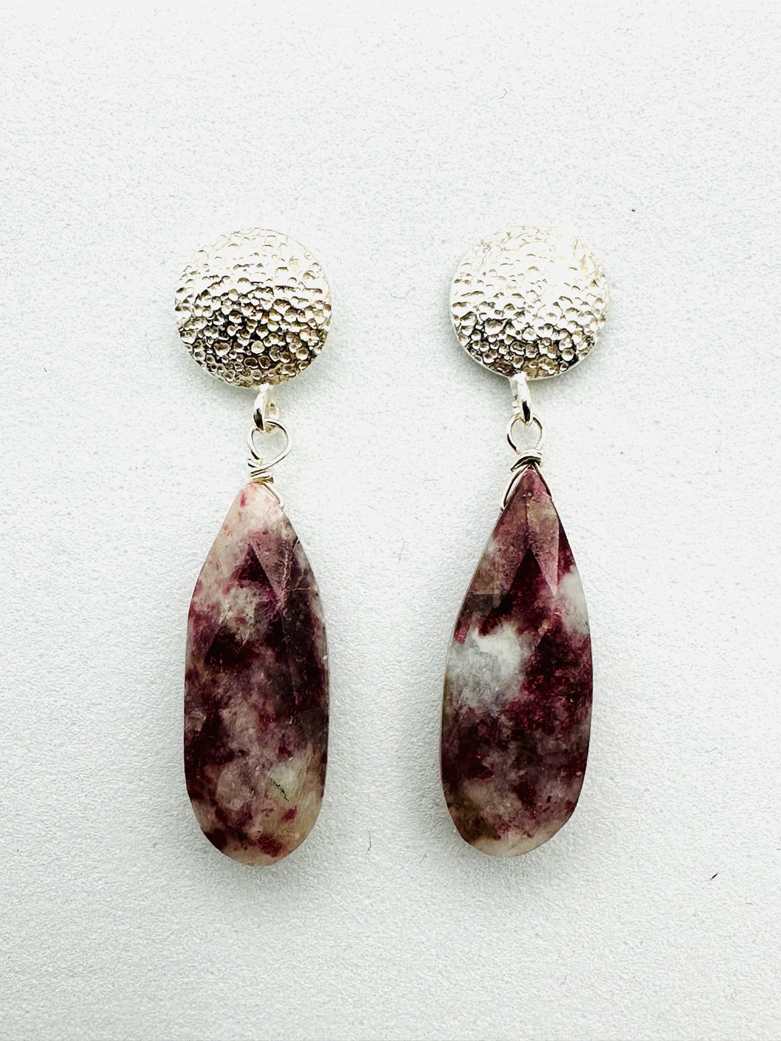 Faceted Pink Tourmaline Teardrop Earring with Textured Sterling Silver Post 1.75"