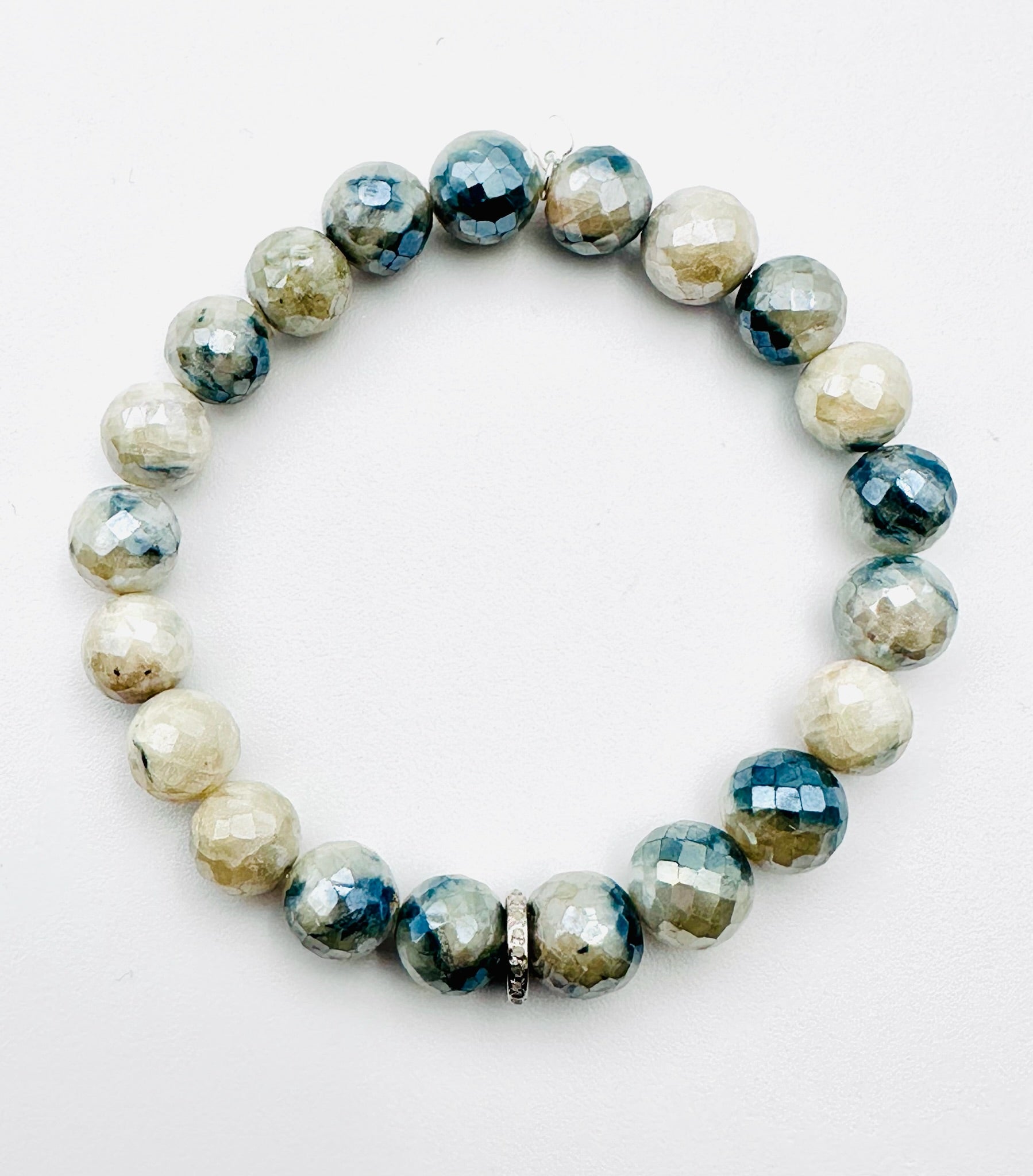 Faceted Silverite Ball Stretch Bracelet with a Sterling Silver Diamond Rondelle, 7.25"
