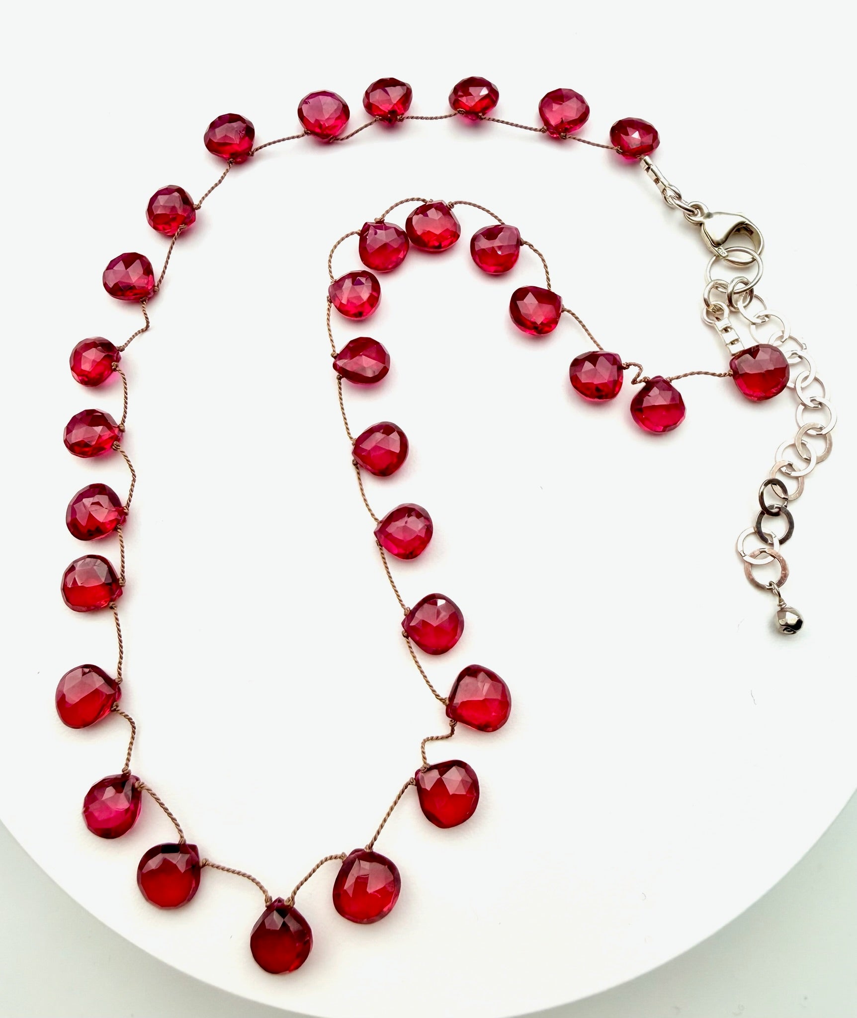 Faceted Teardrop Fuchsia Quartz Necklace with Sterling Silver Clasp, 17"