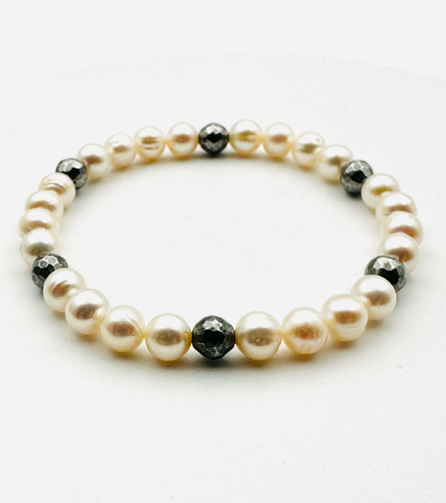 Freshwater Pearl and Pyrite Stretch Bracelet