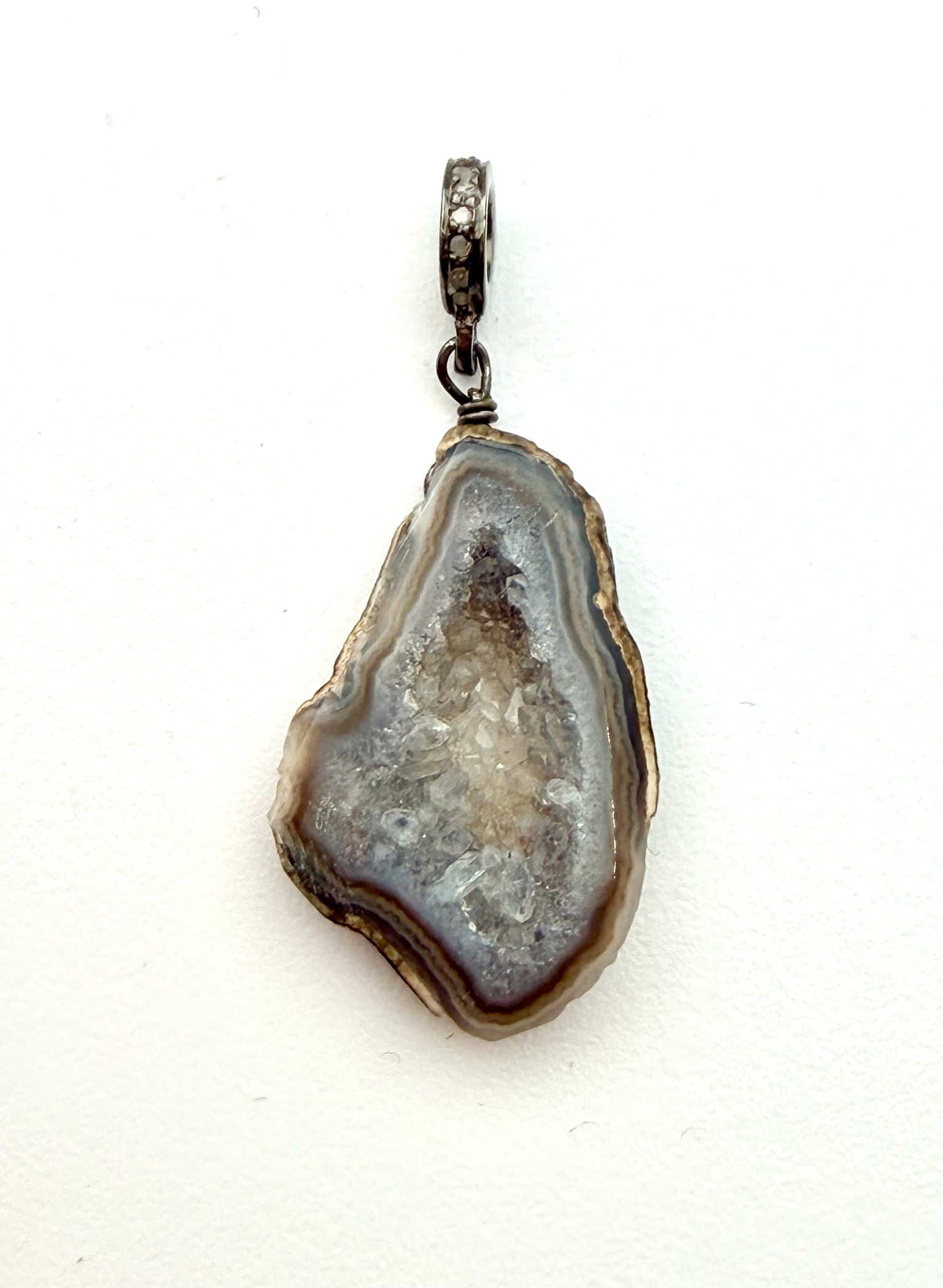 Grey Natural Druzy Pendant with Sterling Silver Diamond Bail, 1.25"