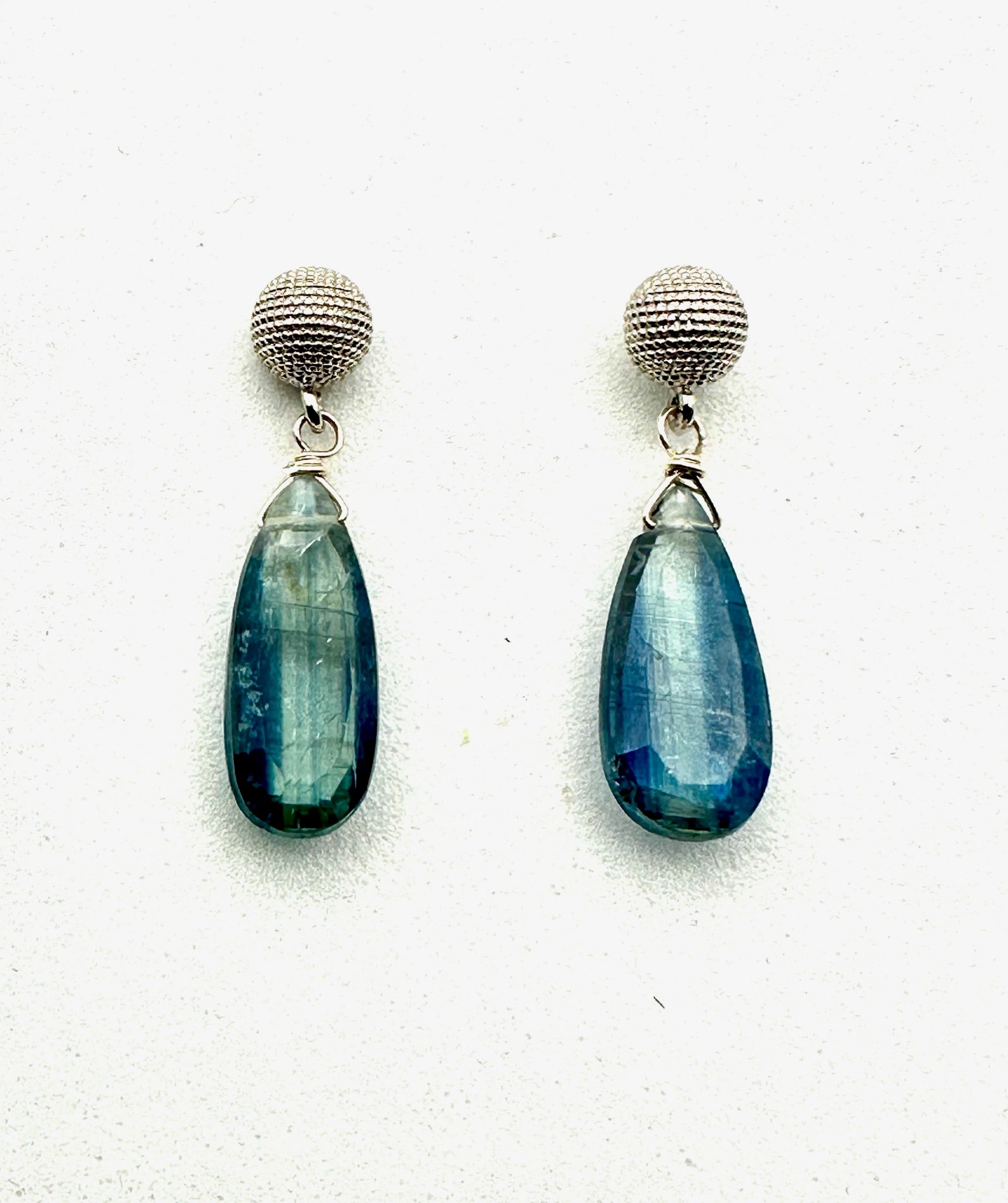 Kyanite Teardrop Textured Sterling Silver Post Earring 1"