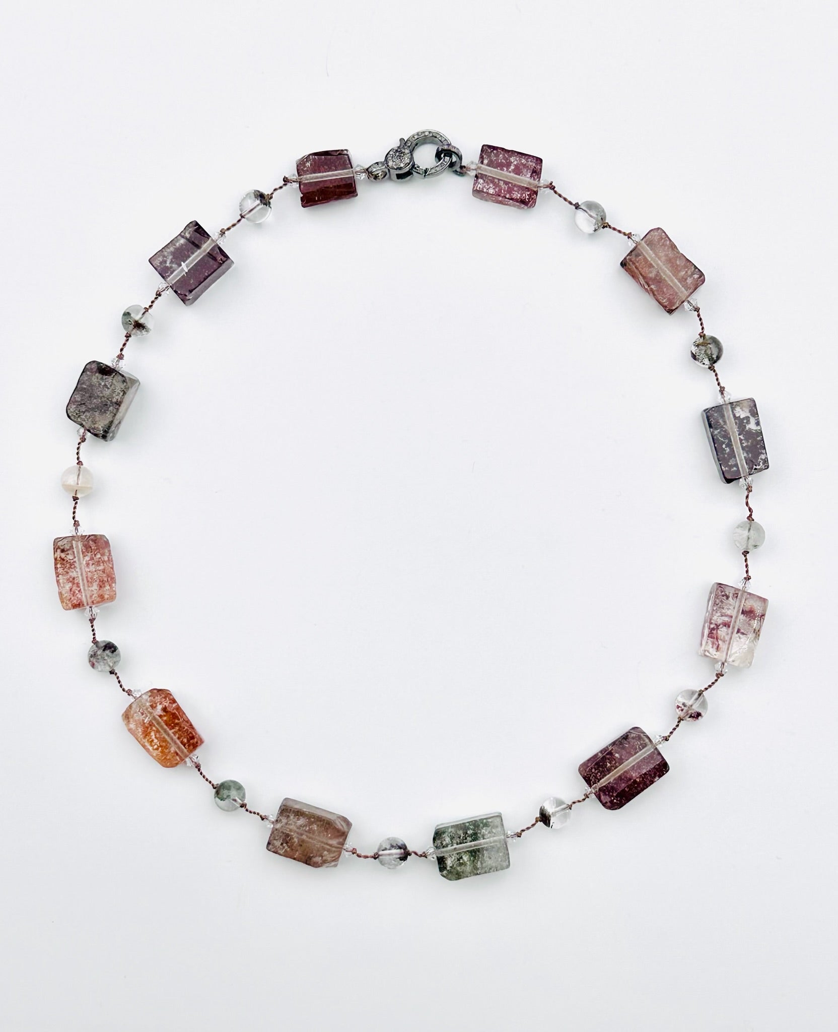 Lodalite and Phantom Quartz Necklace with Sterling Silver and Diamond Clasp, 18"