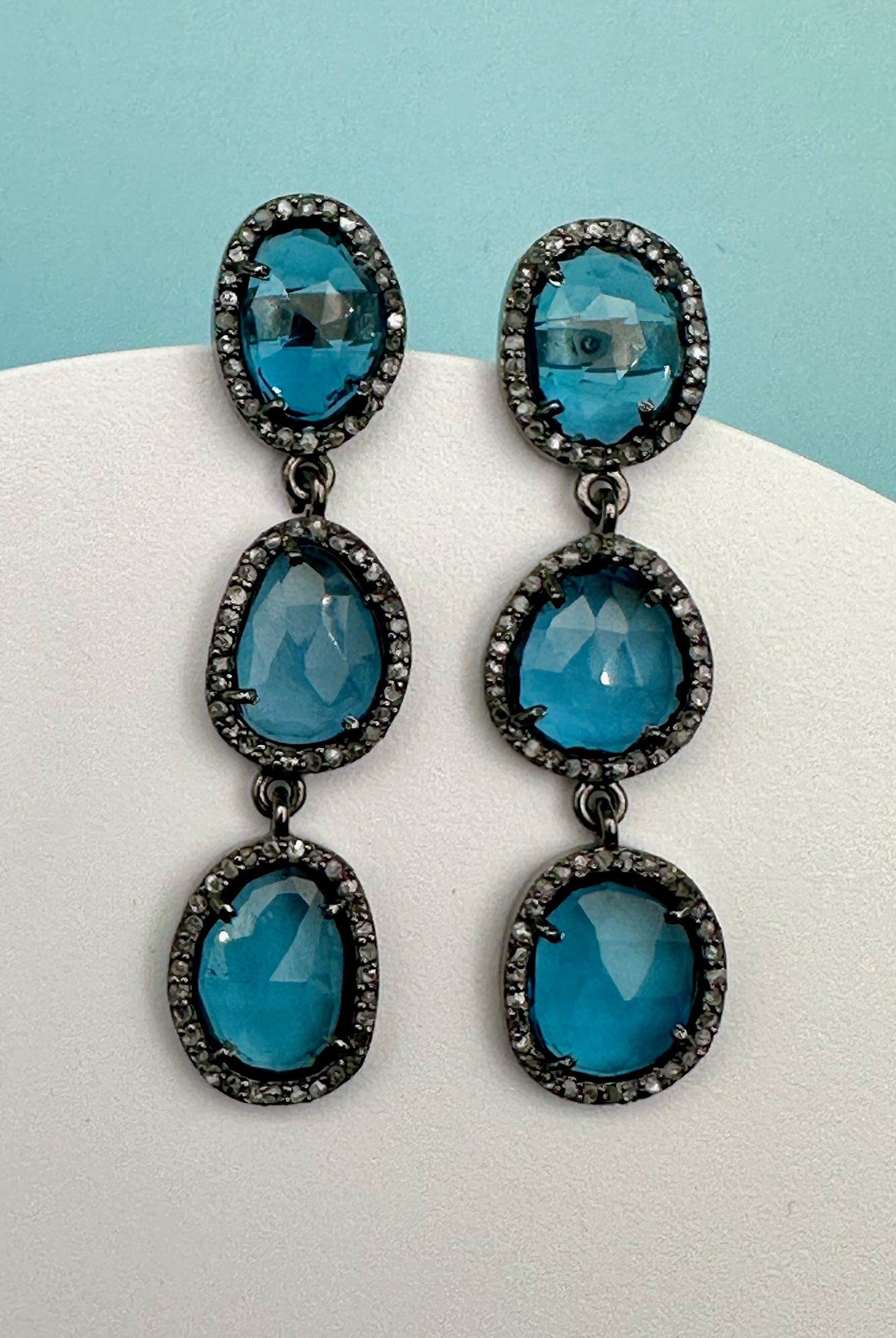 London Blue Topaz and Diamond Post Earring with Sterling Silver, 2"