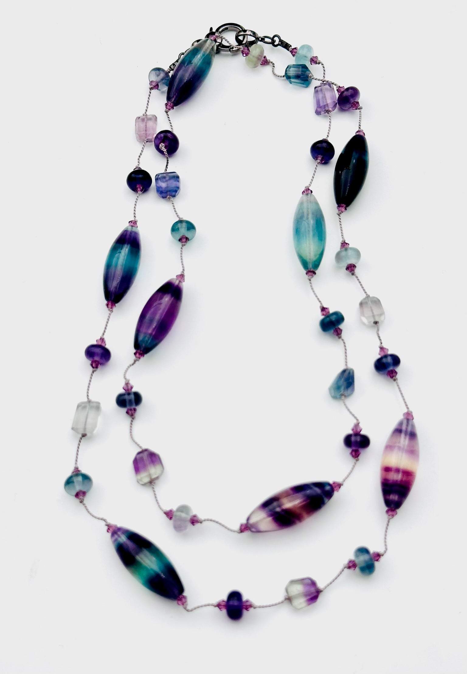Multi Color Mixed Fluorite Necklace with Sterling Silver Clasp, 36"